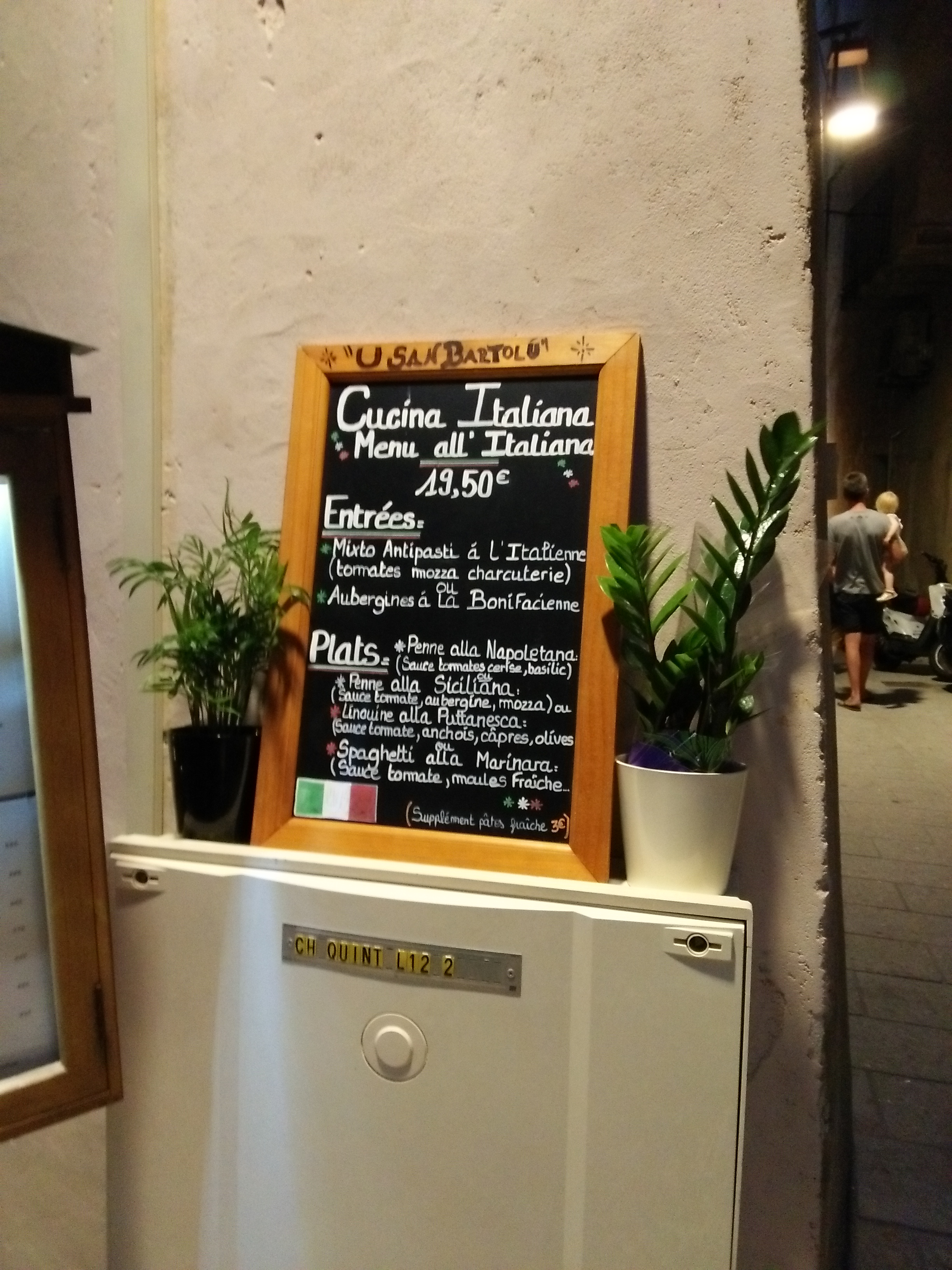 Nourriture italienne de qualité ! Très bon vin également, en haute ville de Bonifacio dans un coin calme. Service un poil long mais le chef est tout seul en cuisine et les plats sont bien présentés. A tester !