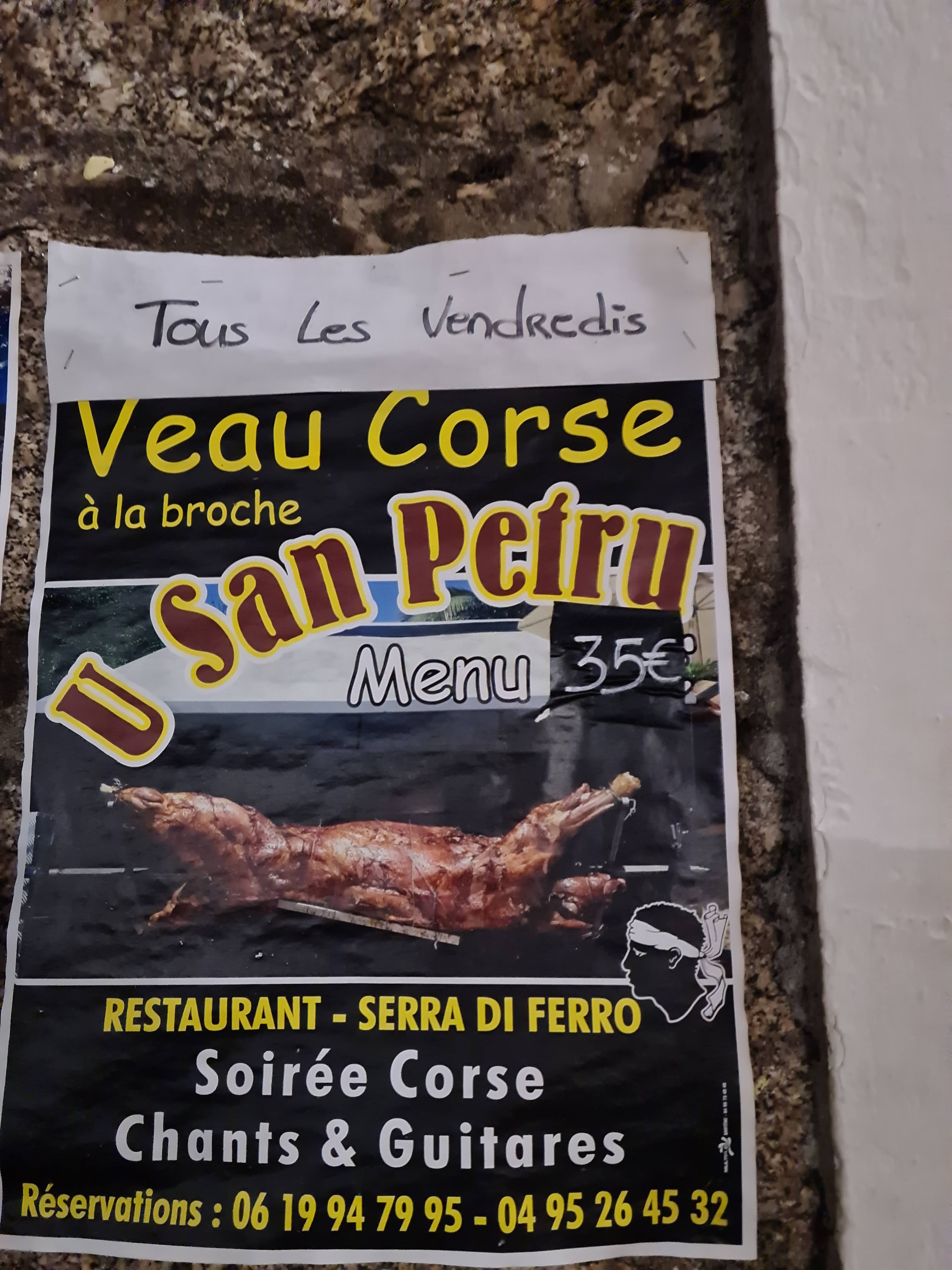 Veau à la broche du vendredi excellent, excellent rapport qualité prix groupe de chanteurs corses très belle ambiance .