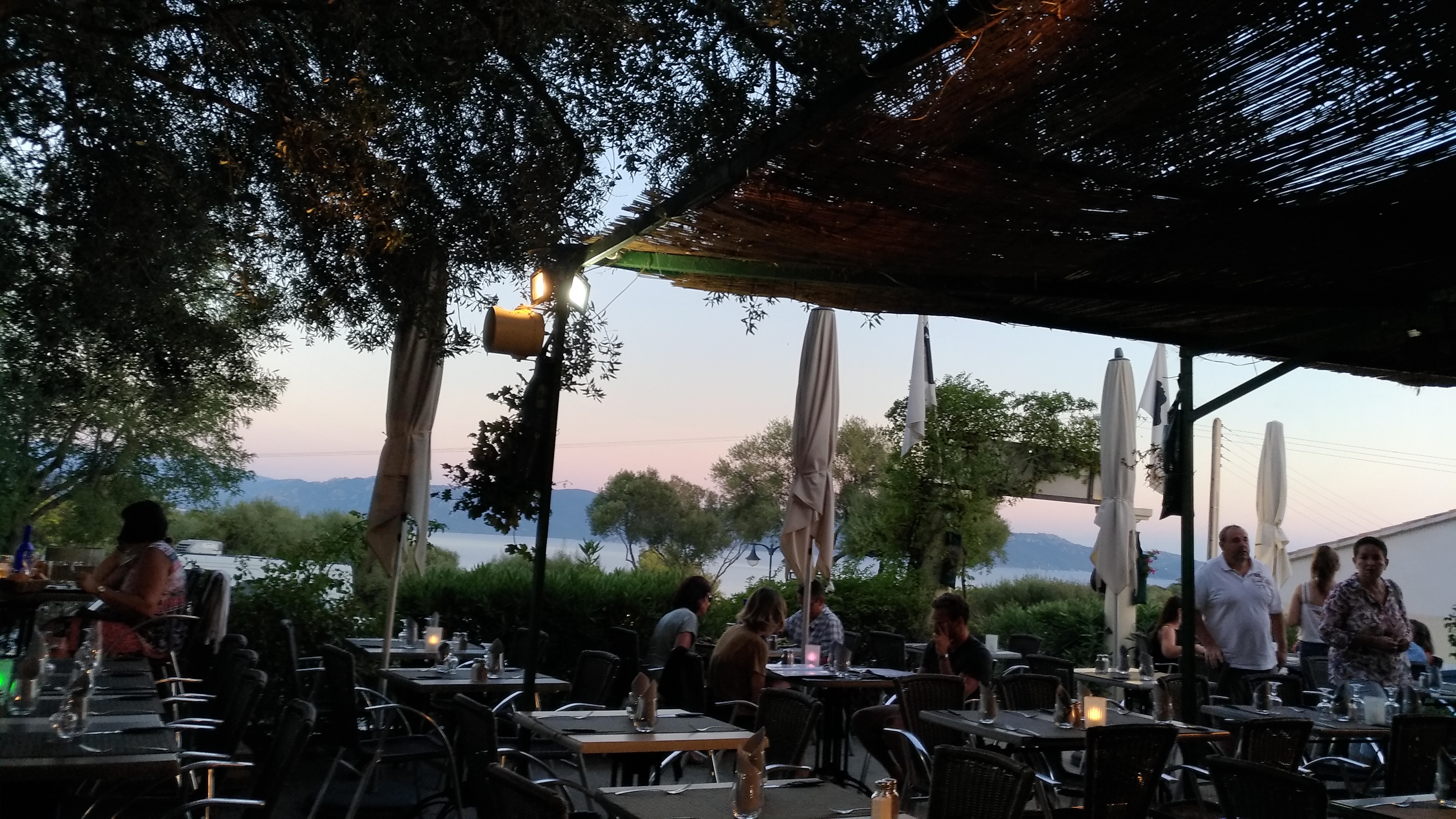 Soirée très agréable, repas de bonne qualité. Terrasse abritée par un magnifique olivier. On a eu la chance de réserver le soir où il y avait trois chanteurs Corse, j'ai adoré ! Un petit bémol pour le prix, mais c'était les vacances !