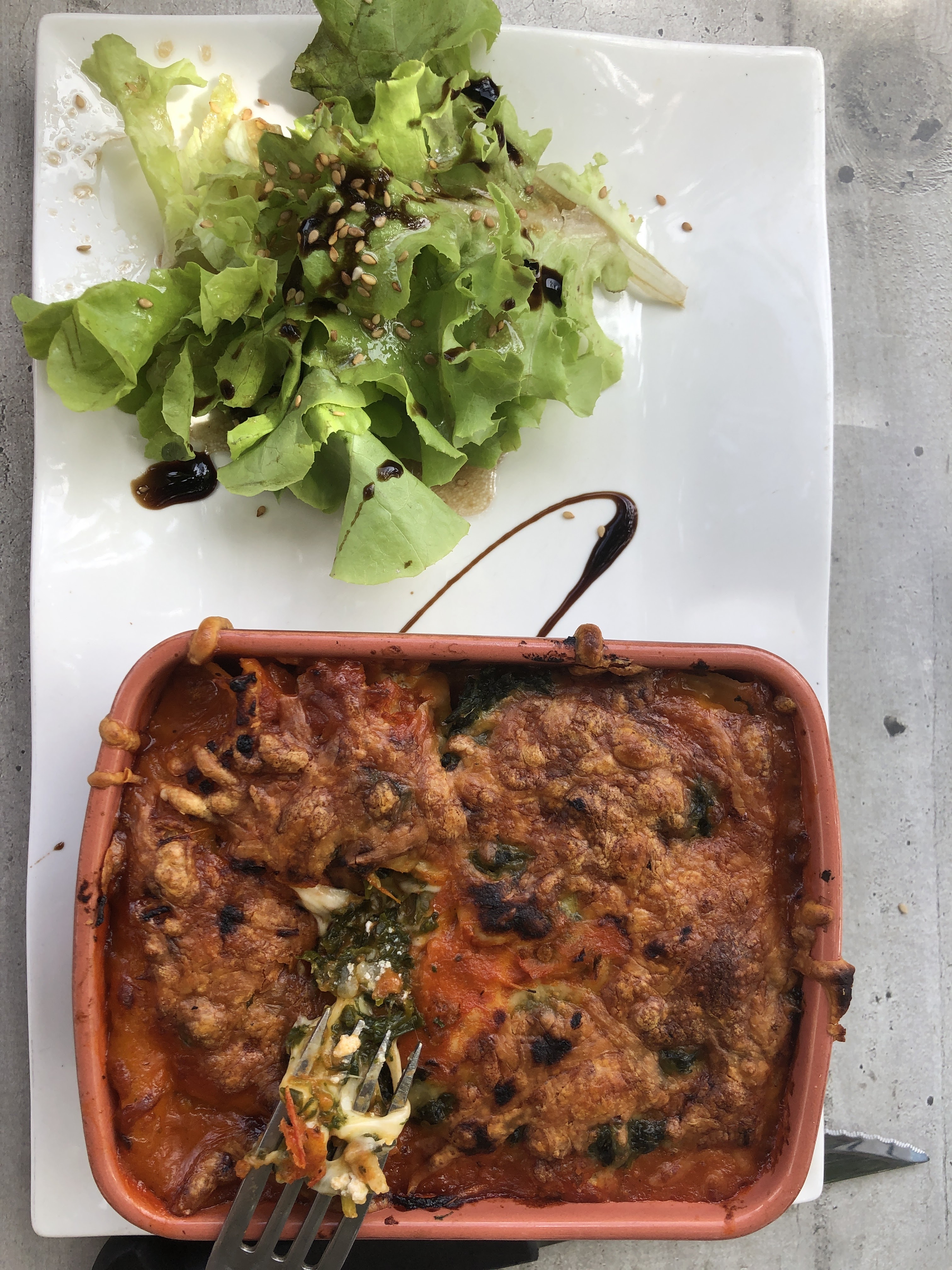Restaurant sur la plage de Pietracorbara où l’accueil est souriant et les plats copieux et savoureux. Nous avons pris le plat du jour: des cannelloni al brocciu: un régal!!!