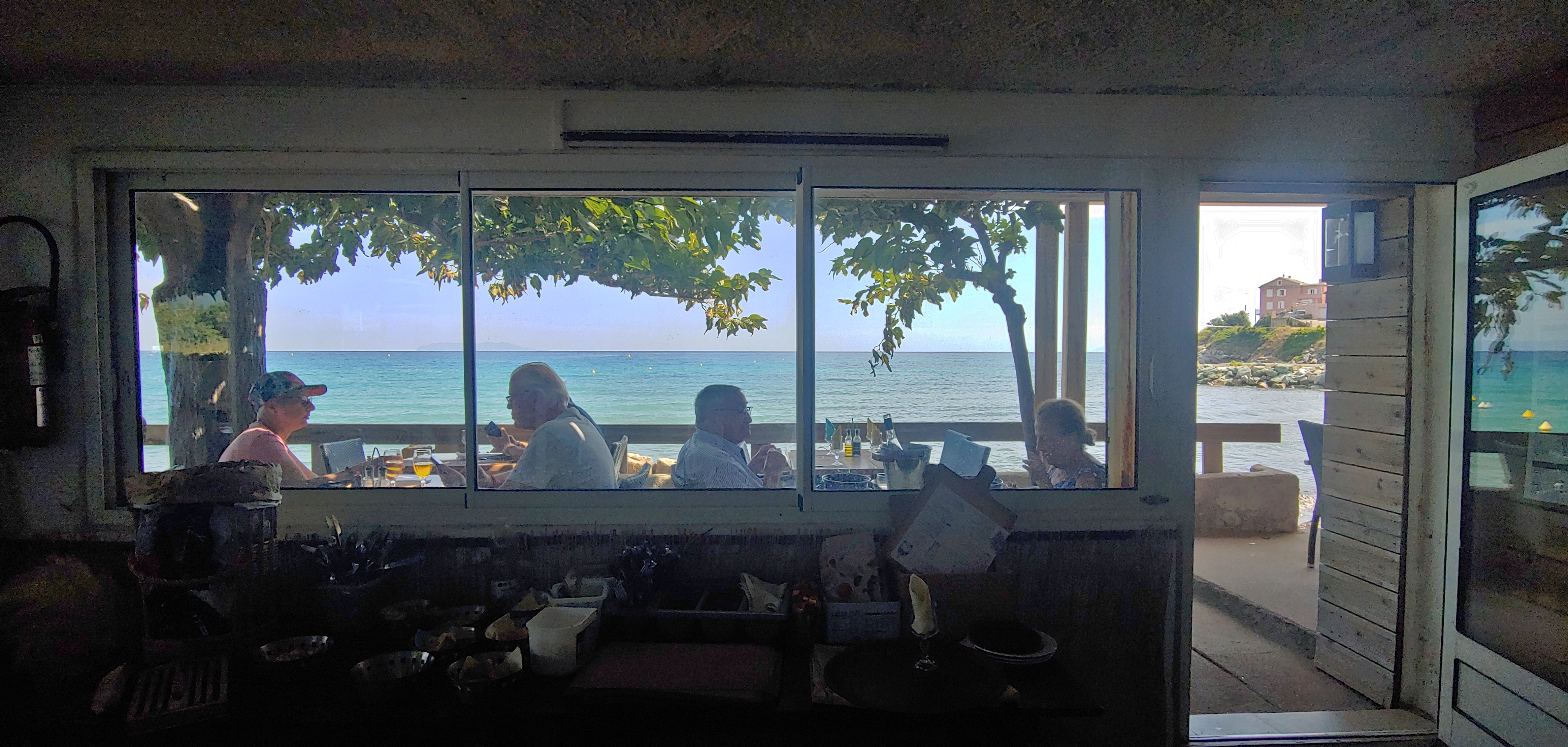 Le site est superbe, on mange pratiquement les pieds dans l'eau. Le service est accueillant, sans chichi. La carte est simple mais appétissante avec comme par exemple, un Lou grillé. Miam 😋. Je vous recommande ce restaurant, et puis si vous avez le courage, vous pouvez faire plouf, si vous n'avez pas trop abusé du Cap Mattei...