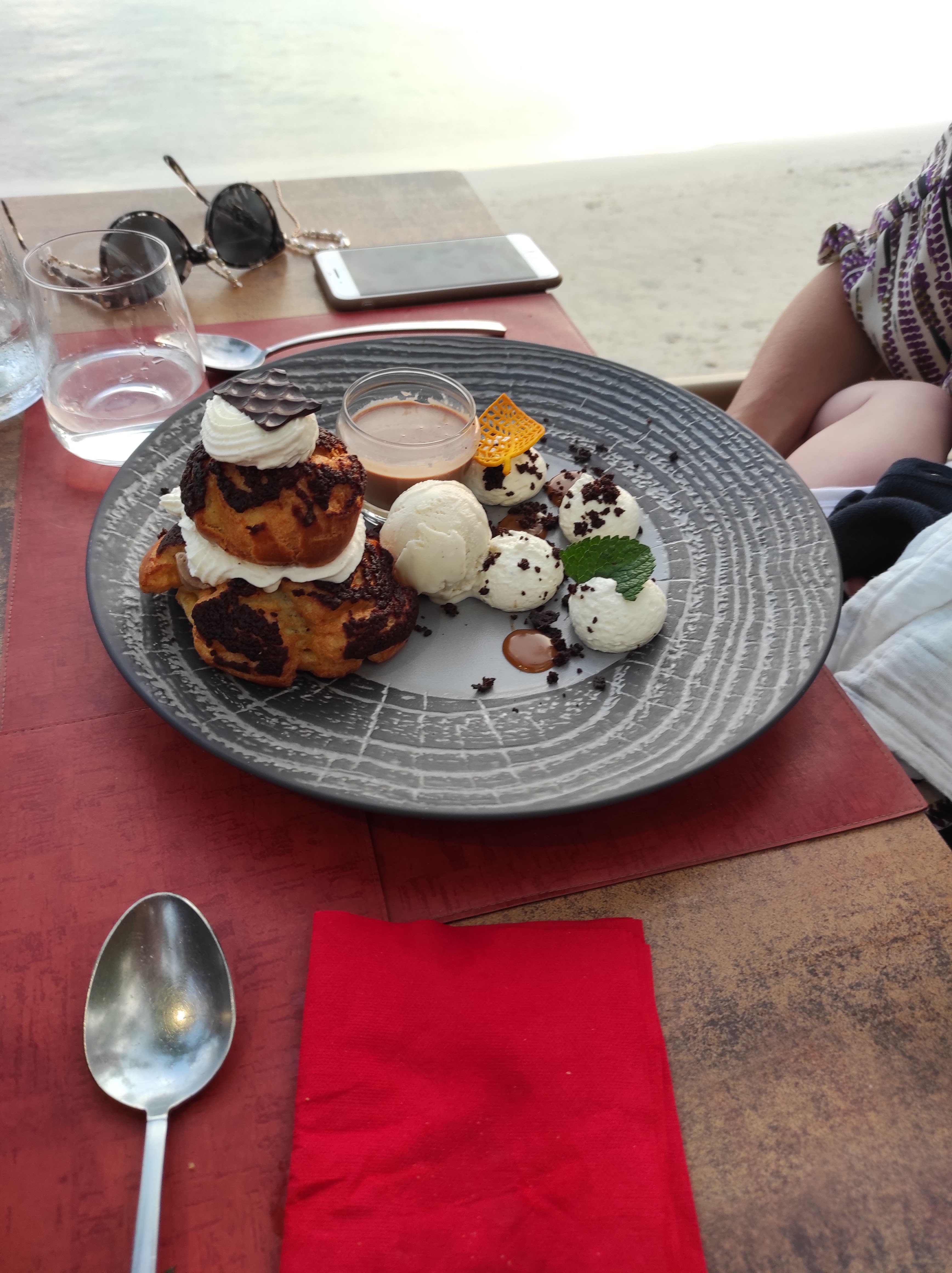 Déçue par le restaurant côté plage. Avions réservé restaurant et transat. Notre réservation était bien enregistrée à notre arrivée. Lorsque ns sommes descendus au restaurant plage, on ne trouvait pas trace. Cocktail de fruits était à température ambiante (pas frais) et au moment du dessert, ile flottante aux pralines, pas de pralines ! Explication : plus de pralines 😪😪 Un peu déçue de l expérience.
