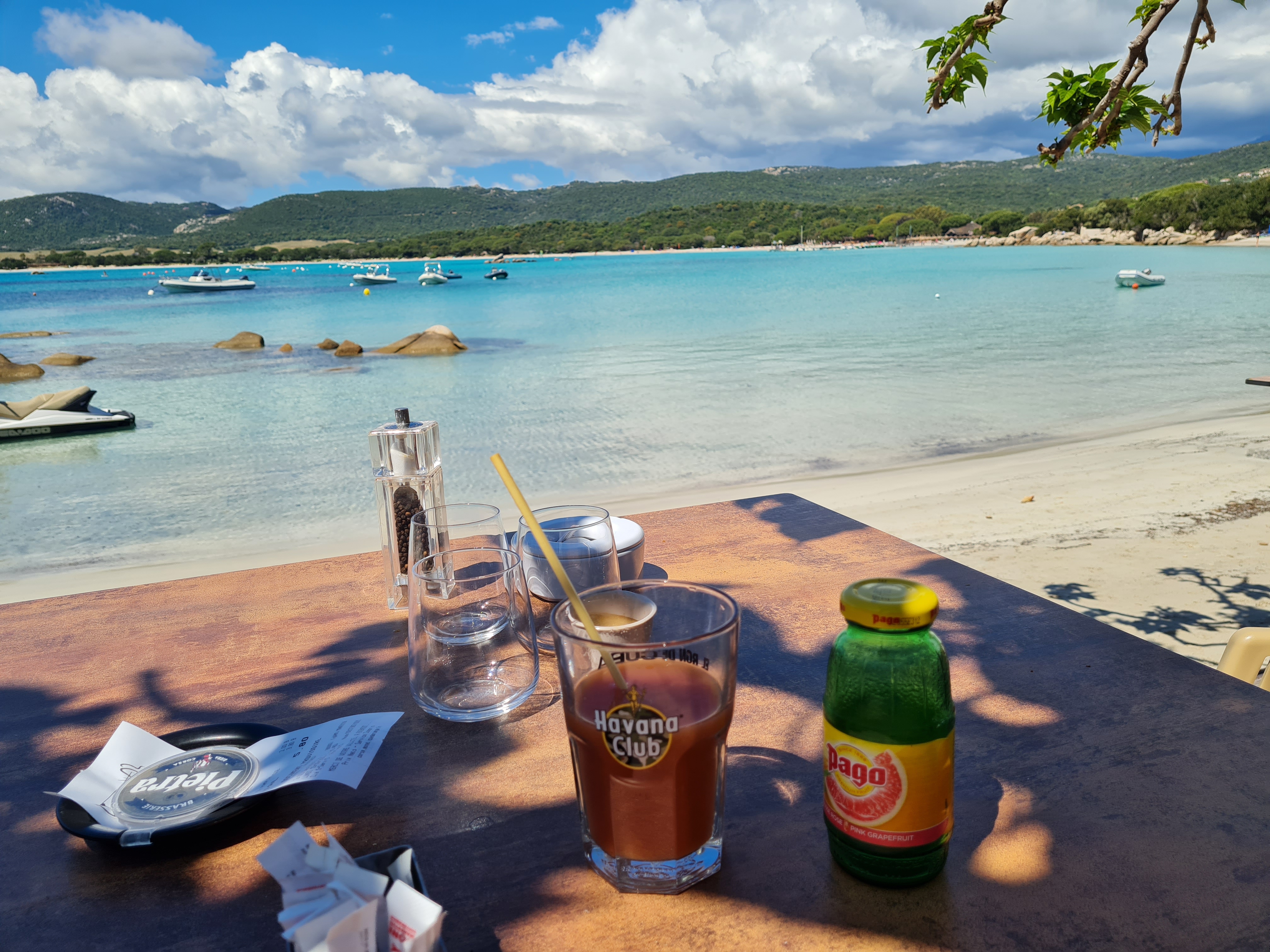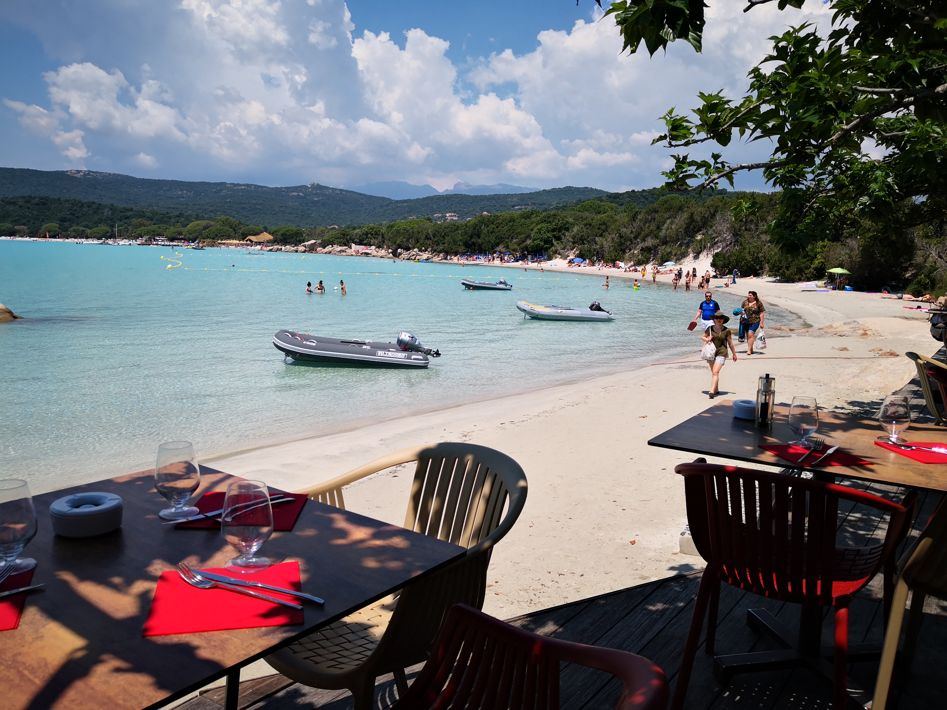 Un remplaçant de rêve directement sur la plage de Santa Giulia, les pieds dans l'eau. Personnel sympa. On y mange bien
