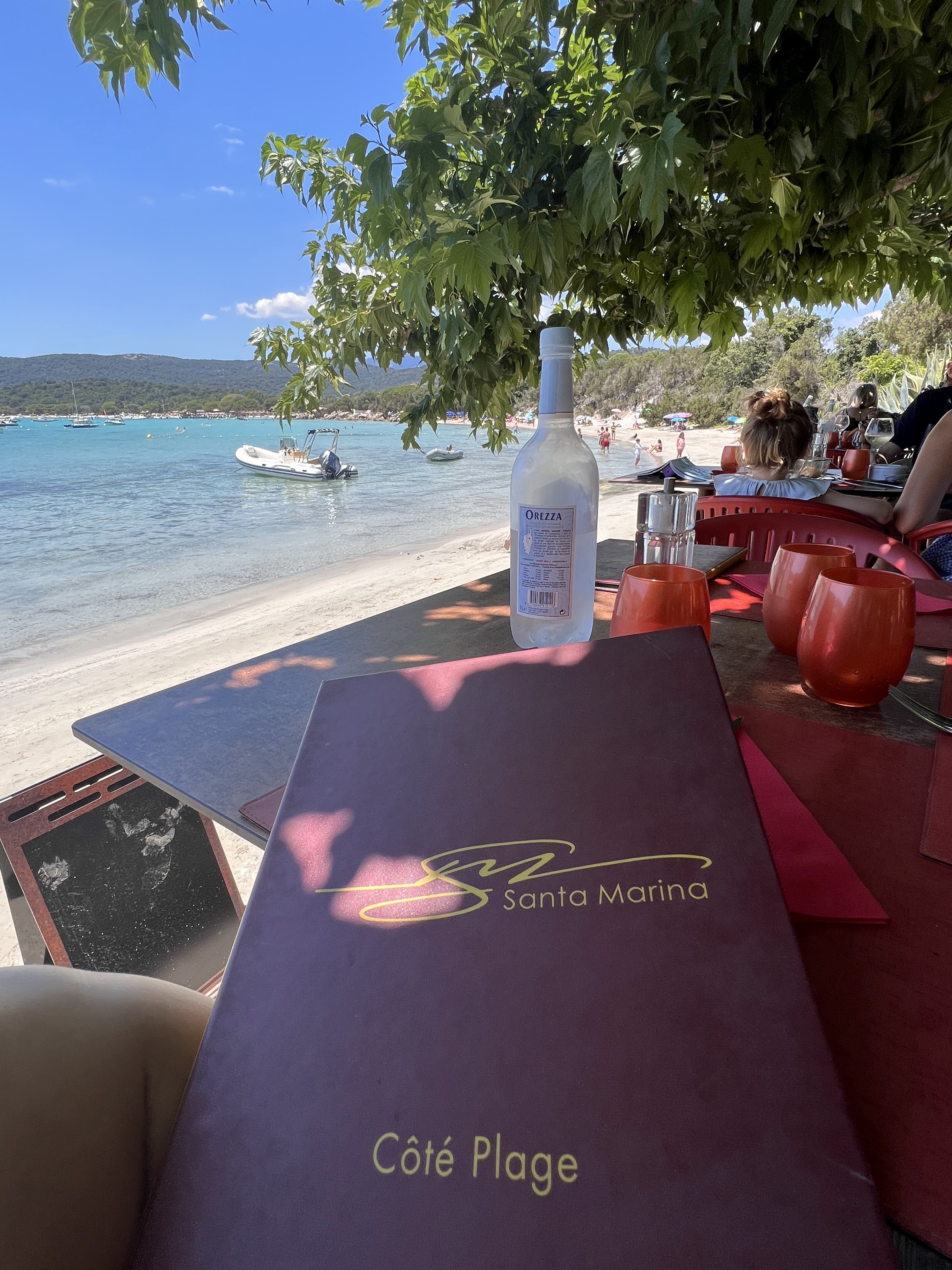 Il est compliqué de trouver un restaurant où bien déjeuner lors d’une sortie en mer pour la journée. A la brasserie de U Santa Marina, c’est impeccable ! Il est facile de réserver, en y arrivant l’accueil est agréable car l’équipe est cordiale et professionnelle. Le restaurant est confortable, parquet au sol, sanitaires propres, mûriers pour l’ombre et SURTOUT la vue sur la baie et son eau turquoise est imprenable. A Ajouter, un ponton indépendant à proximité, un plagiste pour une somme raisonnable vous emmène fixer le bateau au mouillage à une bouée. Exprimons nous maintenant pour le cœur du sujet : les plats. La carte est inventive, c’est servi copieusement, c’est excellent ! Bon choix de vins corses. Et pour se répéter le service est au top.