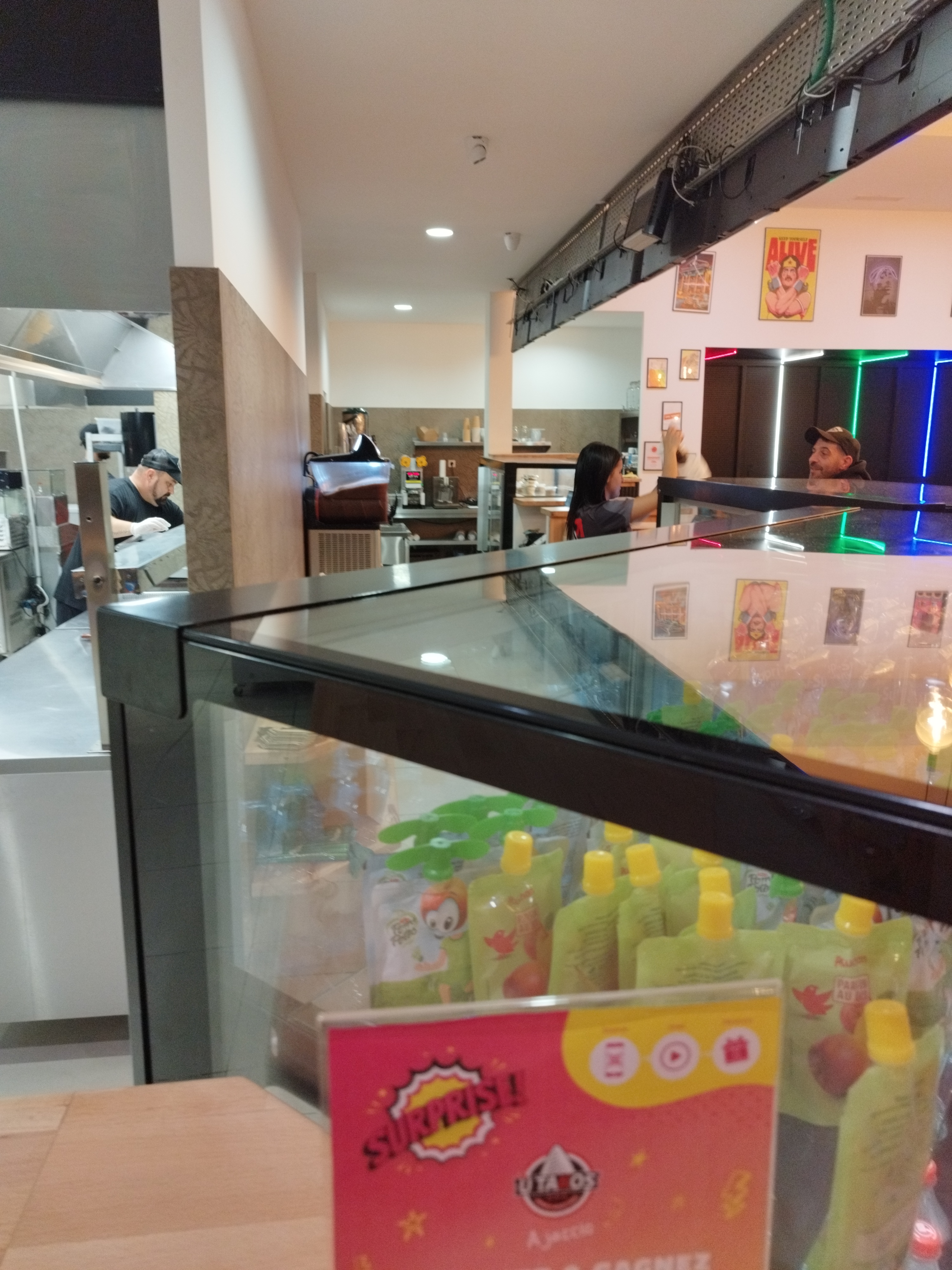 Dommage, je suis client depuis l'ouverture, j'ai été quelques fois déçu mais en général c'est bon. Aujourd'hui, je rentre pour commander à 22h, mais les employés me dise qu'il ferment.. donc je demande pourquoi, sur Google il est marqué 23h ?!.. l'employé me répond, le patron nous a dit ça hier .. maintenant c'est 22h. Il faudrait commencer par actualisé les horaires.. vu les derniers commentaires et ce genre de choses malheureusement cet établissement ne va pas duré.. Dommage le concept est bon.