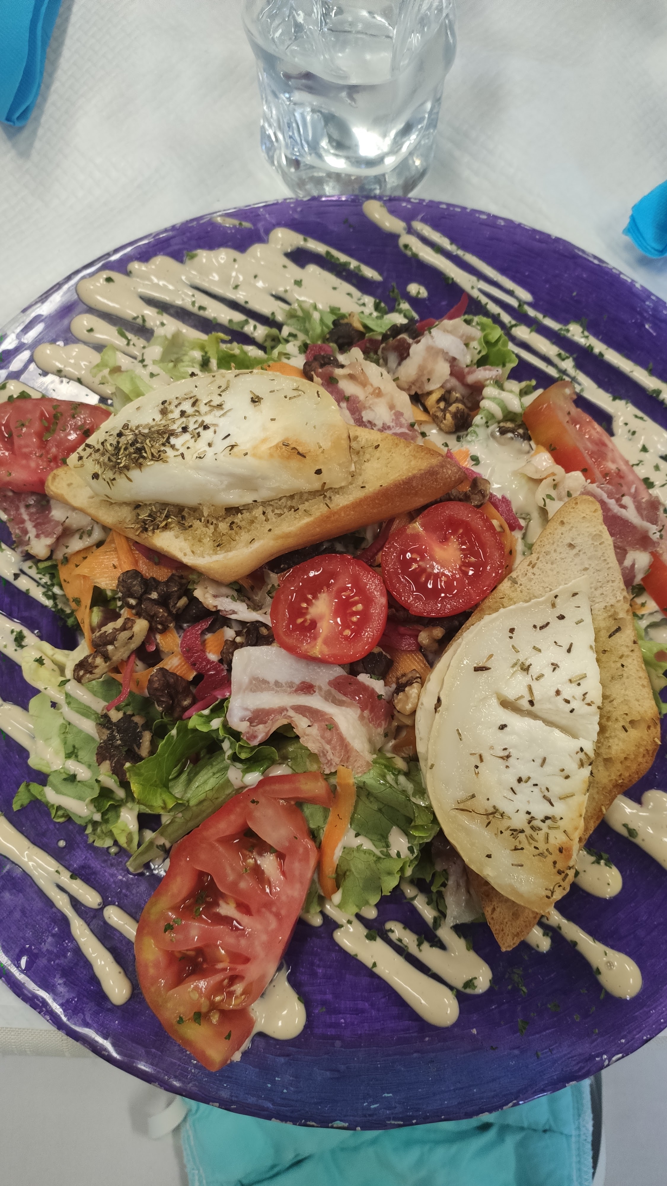 Un délicieux risotto aux fruits de mer. Vin un peu cher. Salade de fruits de mer imprésentable...