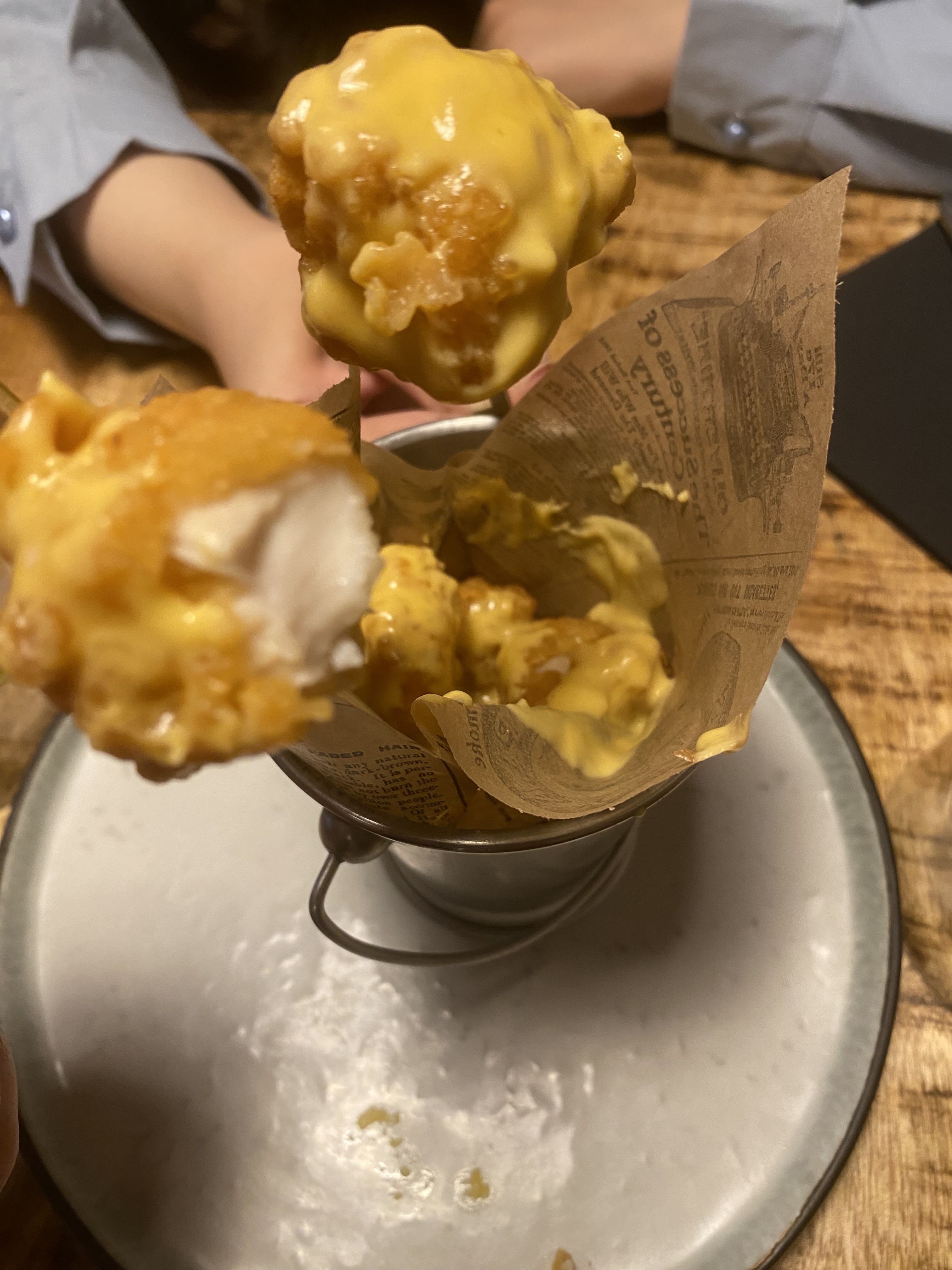 J'ai commandé à emporter donc je ne peux juger le service ainsi que les serveuses qui avaient l'air super mais les frites ainsi que le fromage n'était pas bon du tout. Un goût amer et les frites étaient sans doute réchauffé. J'ai vomis toute la nuit et je pense que c'est du à une indigestion. Je déconseille!!