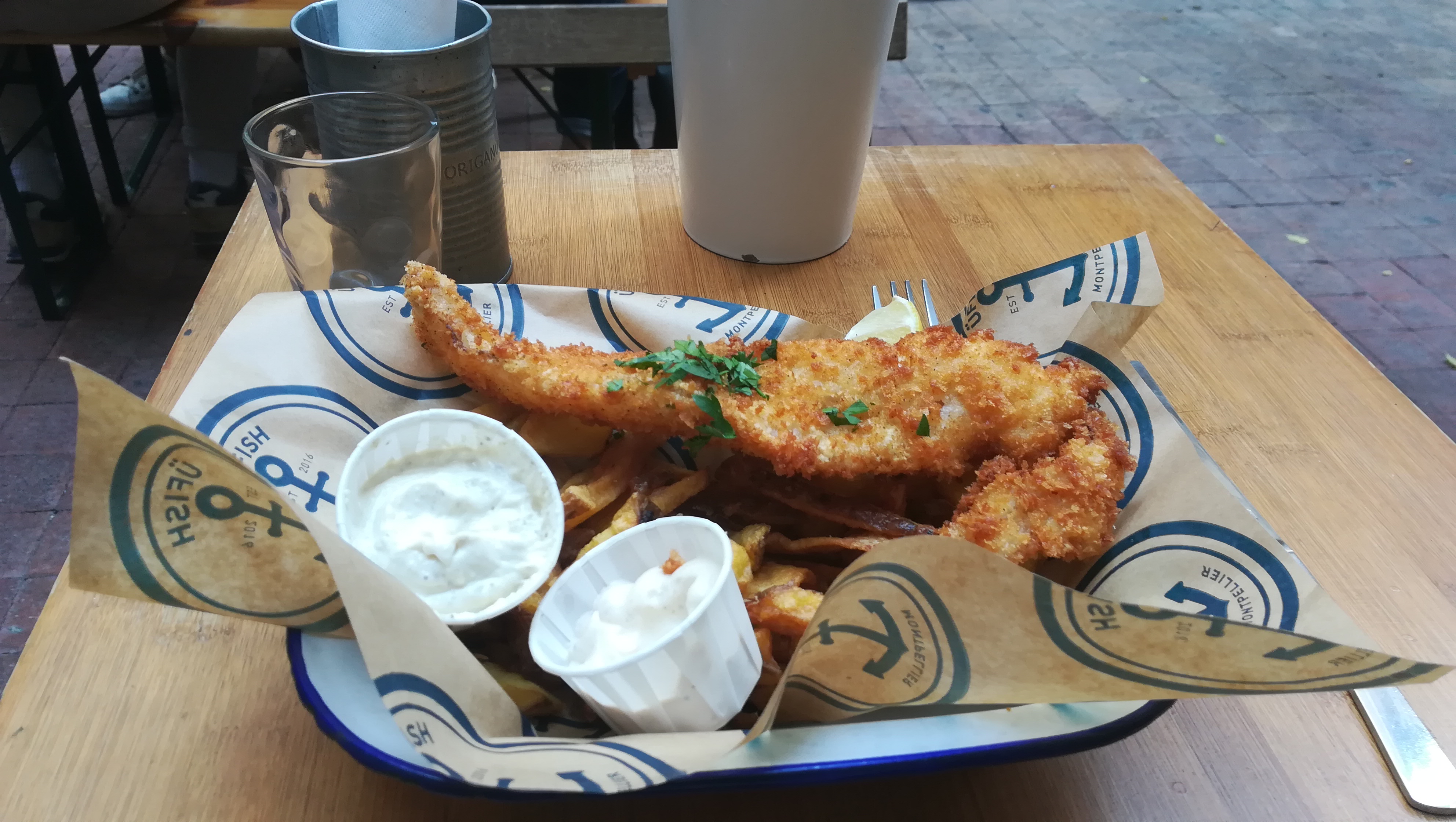 Un excellent fish and chips. On y passes un très bon moment, la terrasse est agréable en plein cœur de la vie montpelliéraine. Les frites me semblent maison, le fish je pense congelé sans certitude. Mais c'est un bon rapport qualité prix.