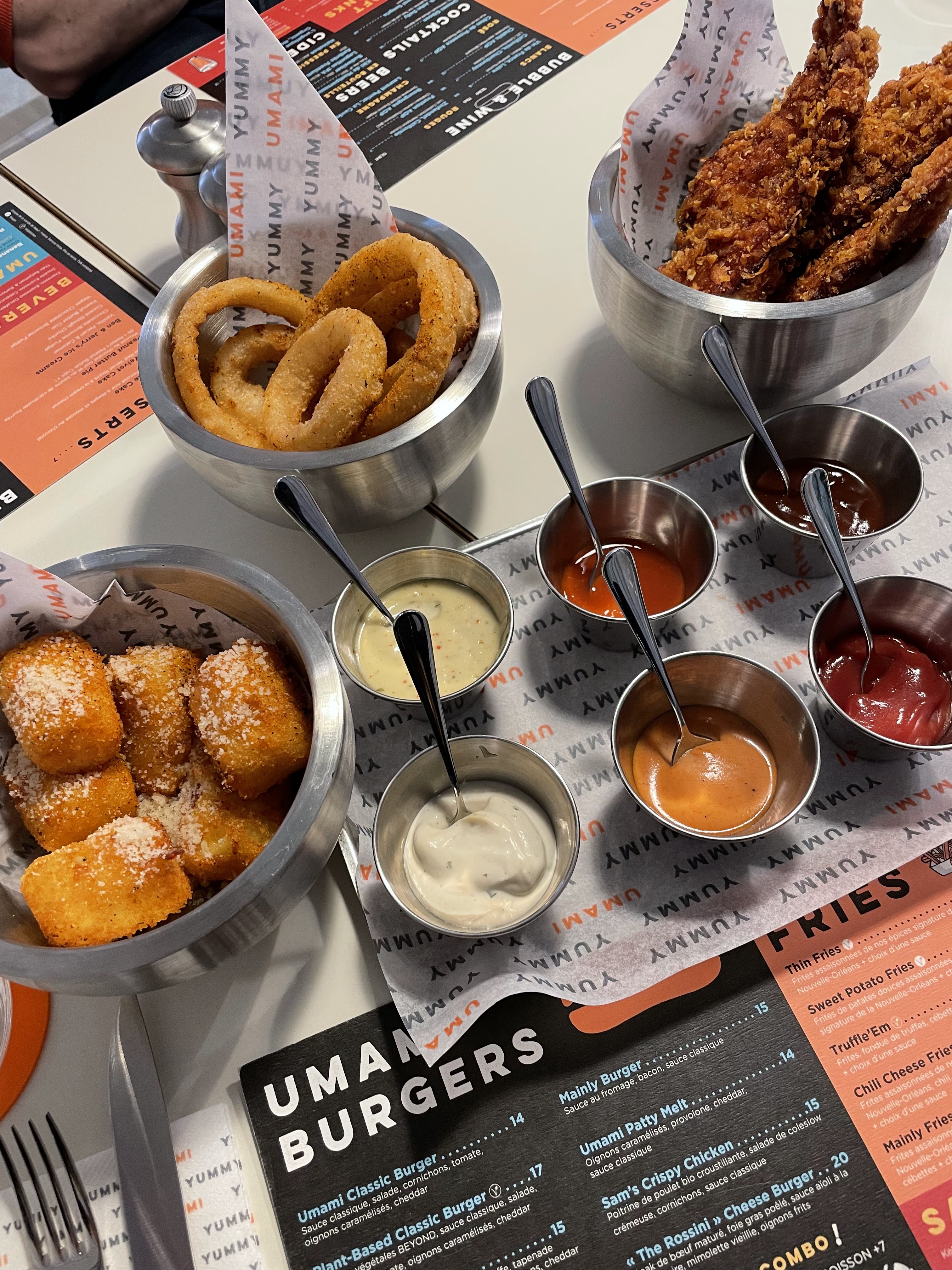 J’ai mangé à umami burger une ambiance très chaleureuse le personnel à l’écoute et souriant # ousmane qui nous a servis