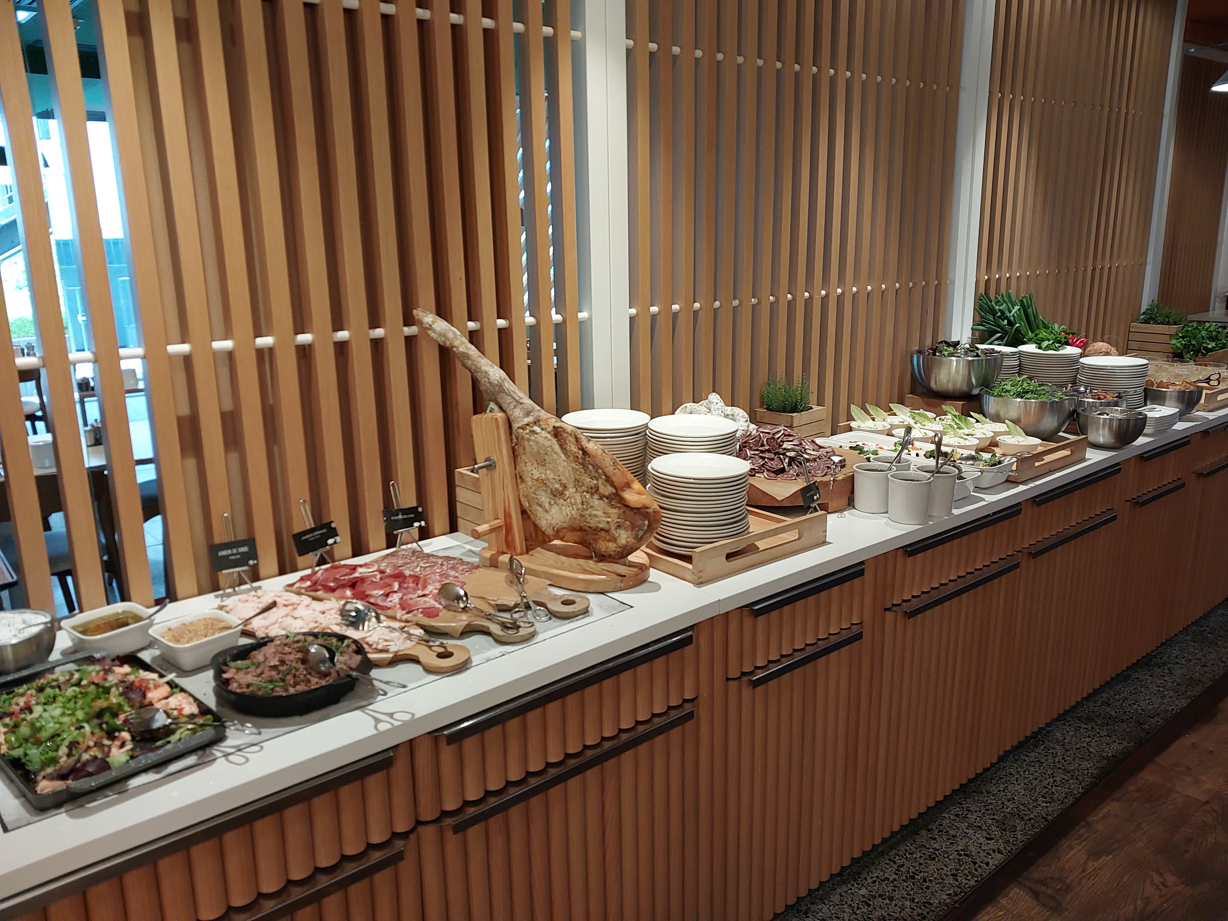 Venu pour le brunch du dimanche, on y trouve un très large choix d'entrées froides, de plats chauds et de desserts. Il est possible de se faire ses granola avec énormément de choix de graines, fruits secs et autres. Malheureusement le stand viennoiseries et fromages est moins conséquent puisque le brunch se veut américain. Tous les produits sont de qualités, nous y avons très bien mangé ! Le personnel est au petit soin et les robots qui débarrassent amusent. Je recommande fortement, notamment les burgers au poulet, les oeufs Bénédicte, les frites de parade douce et les salades de fruits. Le prix est justifié !