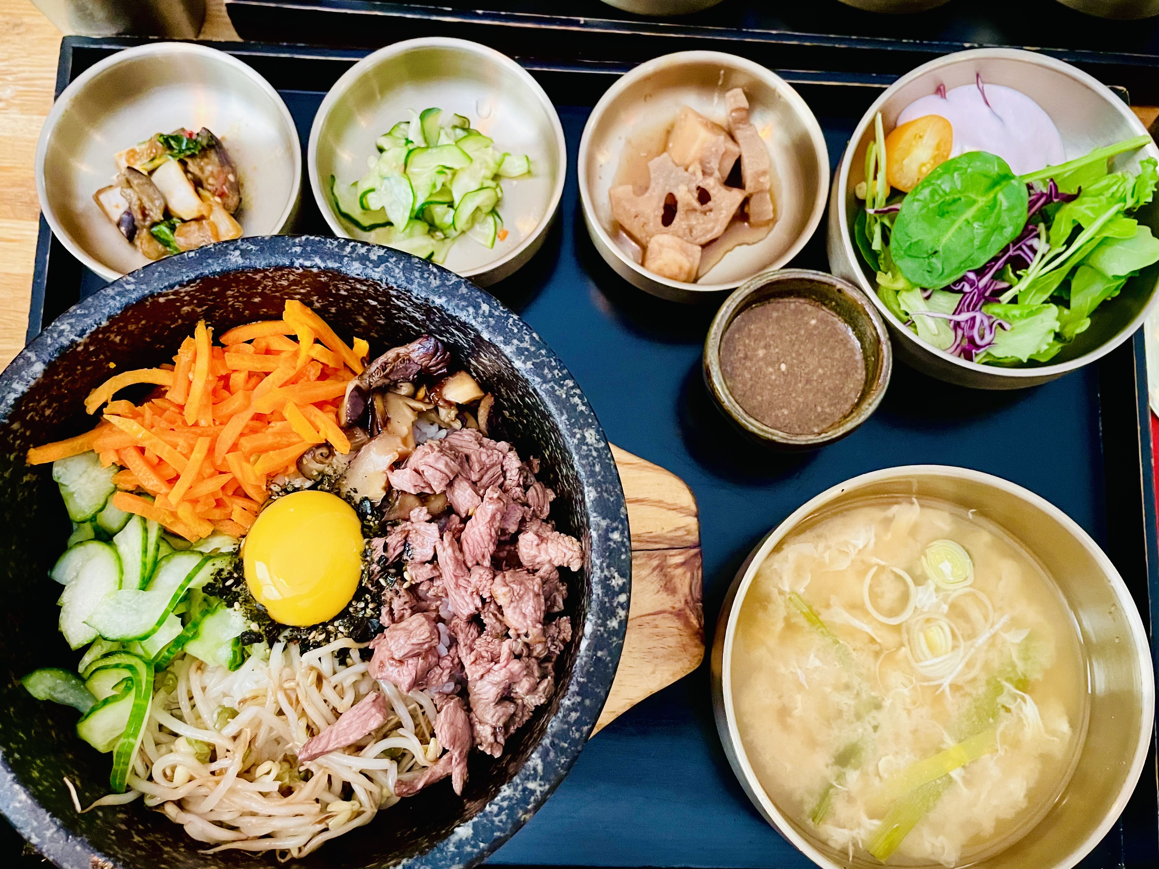 Déjeuner ici, c'était comme faire un voyage en Corée, Wow ne peut pas en dire assez sur le goût de tout. Le serveur faisait un excellent travail en s'occupant de toute la salle à manger. Il a tout expliqué en anglais, ce qui a été d'une grande aide. Même la carte des vins était incroyable pour un petit restaurant ethnique avec des verres à pied corrects. Nous reviendrons certainement bientôt et arriverons tôt les 3/4 pendant le déjeuner, où les gens ont été refoulés, très populaires auprès des habitants.