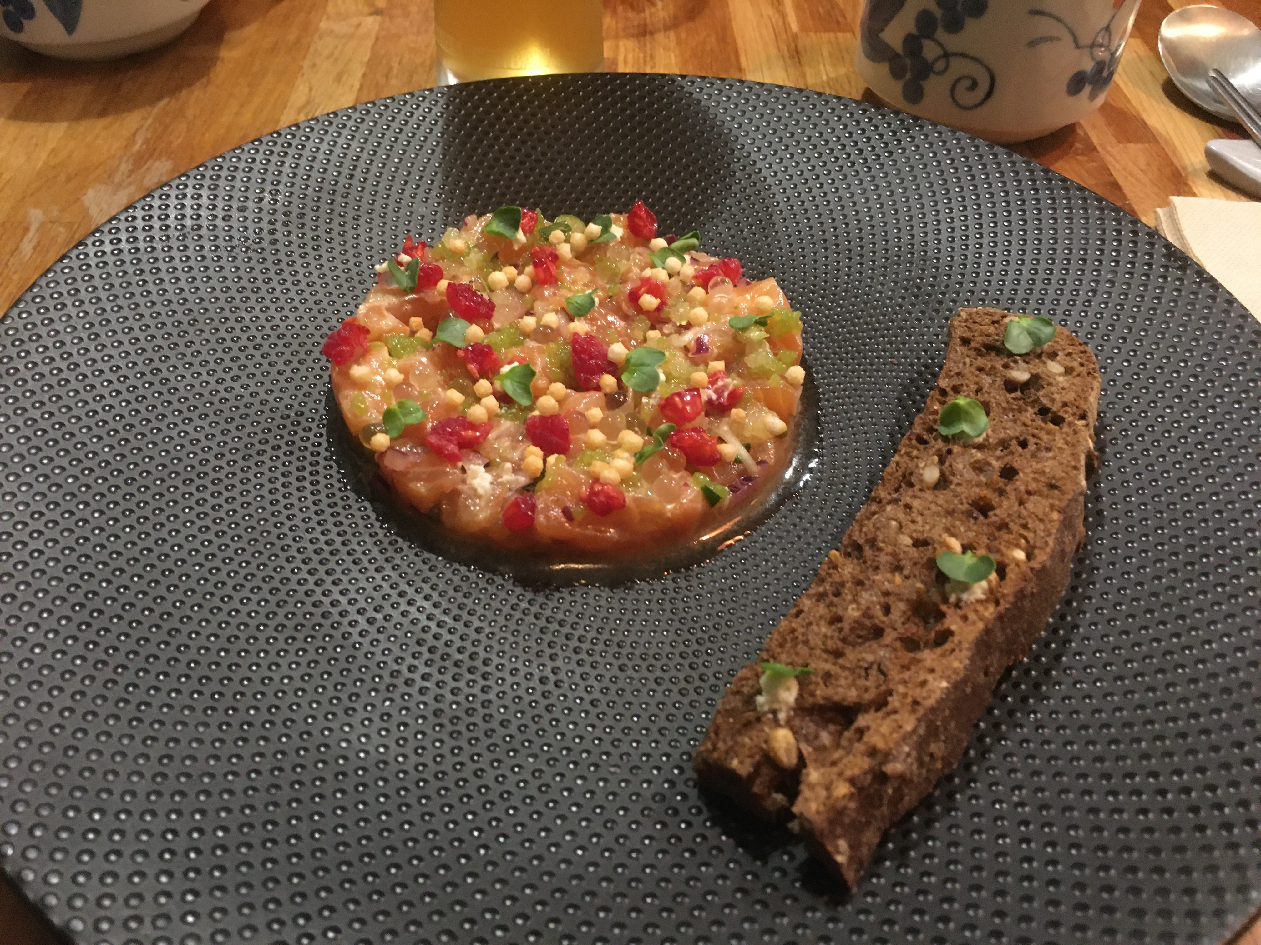 Très belle découverte :visuellement et sans parler du goût incroyable !! Le patron aux petits soins sans parler du serveur qui vous explique tout et surtout à ne pas hésiter à demander conseil pour comment bien manger le plat avec de bon conseil pour le verre qui ira au mieux pour accompagner ! Et entre-temps j’ai pu apercevoir la cuisinière qui est vraiment sympathique et qui a un vrai talent pour sa cuisine !( je vous conseille de réserver à l’avance car c’est assez petit et très vite remplis ) Bonne dégustation chez eux les yeux fermés je vous le conseille fortement !
