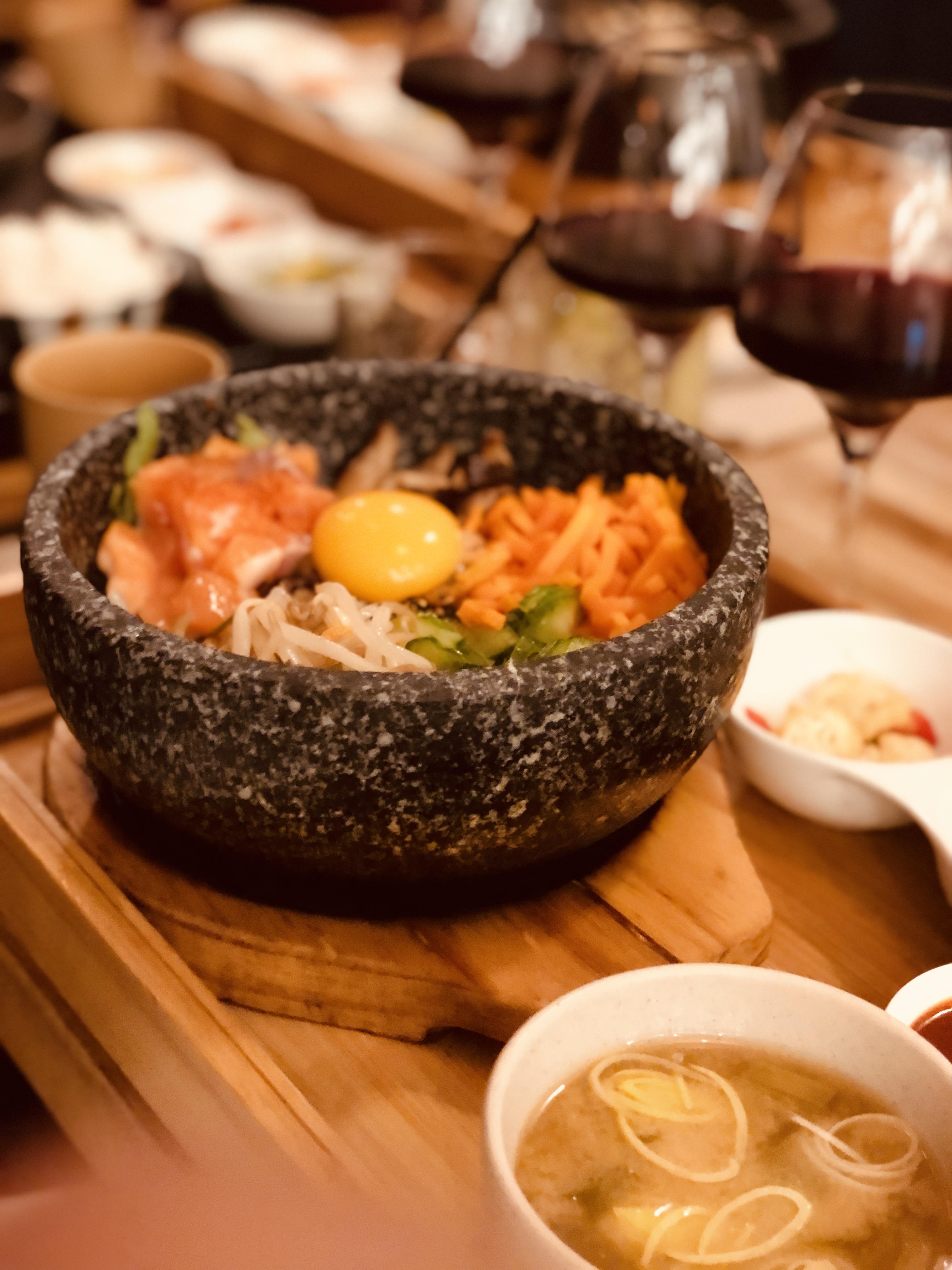 Cuisine très inspirée, les bibimbaps étaient excellents et alors ce tofu grillé et sésame noir en entrée était une vraie dinguerie ! Juste un conseil, à y refaire, je prendrai le dolsot bibimbap (avec pierre chaude), le mien est arrivé un peu tiède. Nous avons goûté les deux sakés du jour qui étaient très bons et très bien expliqués par le serveur. Par ailleurs, les plats sont excellents, mais alors le service, une des rares fois où on y fait attention dans le bon sens ! Les serveurs sont SUPERs sympa, disponible et connaissent parfaitement leurs produits. Bravo !