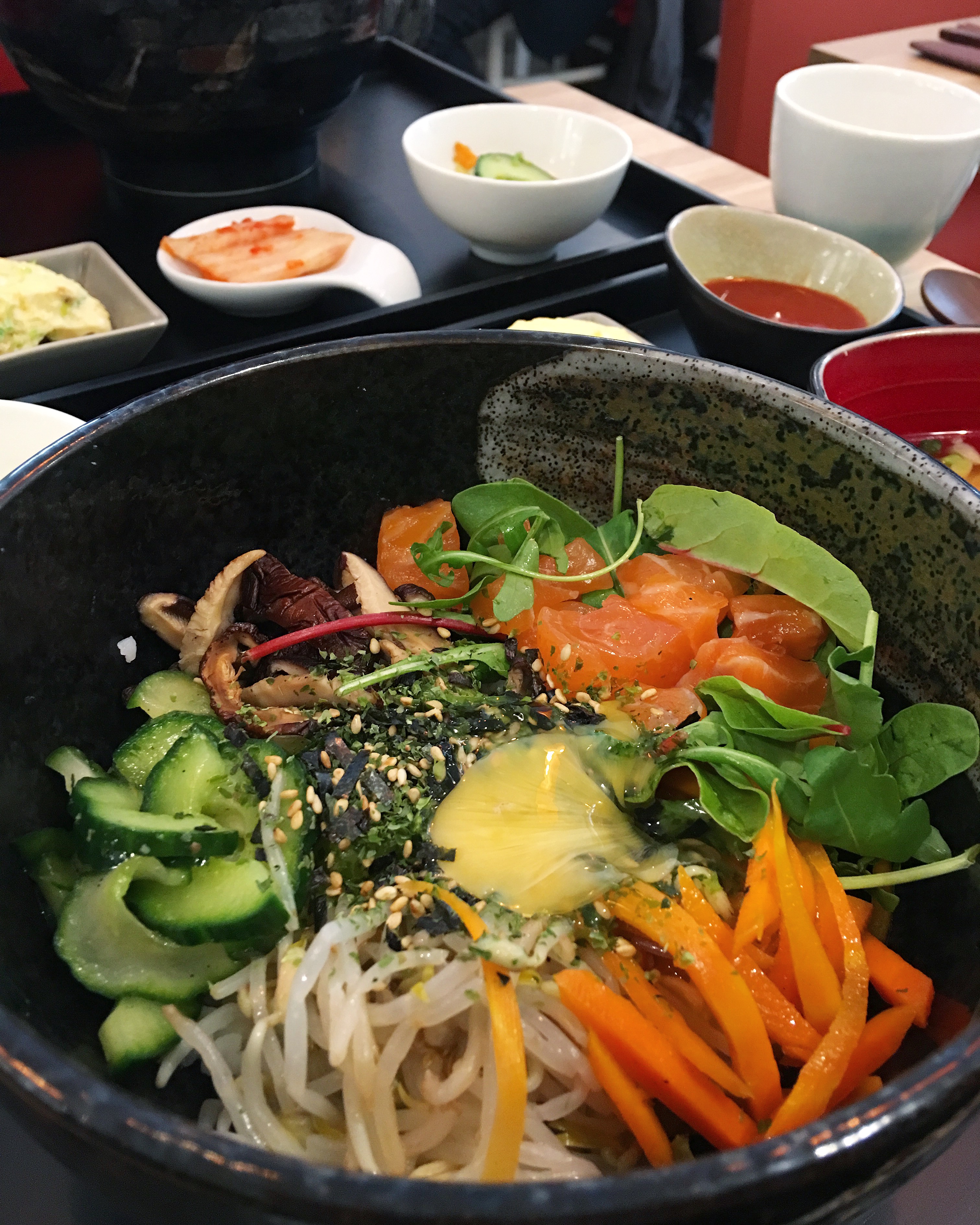 Déçu. Très cher (une cannette de bière 33cl, 5,50€ et même pas bonne ne fraîche!sur le menu n'indique pas qu'il s'agit d'une cannette et non de la bière en bouteille) et rien d'exceptionnel pour les prix et les attentes. Plats variés mais pas bien cuisinés (Bibimbap saumon, trop de mélange dur à trouver les saveurs, par exemple, le riz (pas tout) du bol chaud était un peu brûlé et le saumon pour la chaleur du bol s'était trop cuit et donc il était sèche. La soupe dans les accompagnements était très bonne, mais la salade avec la sauce blanche personne n'a mangé). Il s'agit d'une expérience culinaire personnelle, on peut aimer ou pas, ça dépend des goûts de chacun. Le personnel il était super et l'endroit simple et propre.