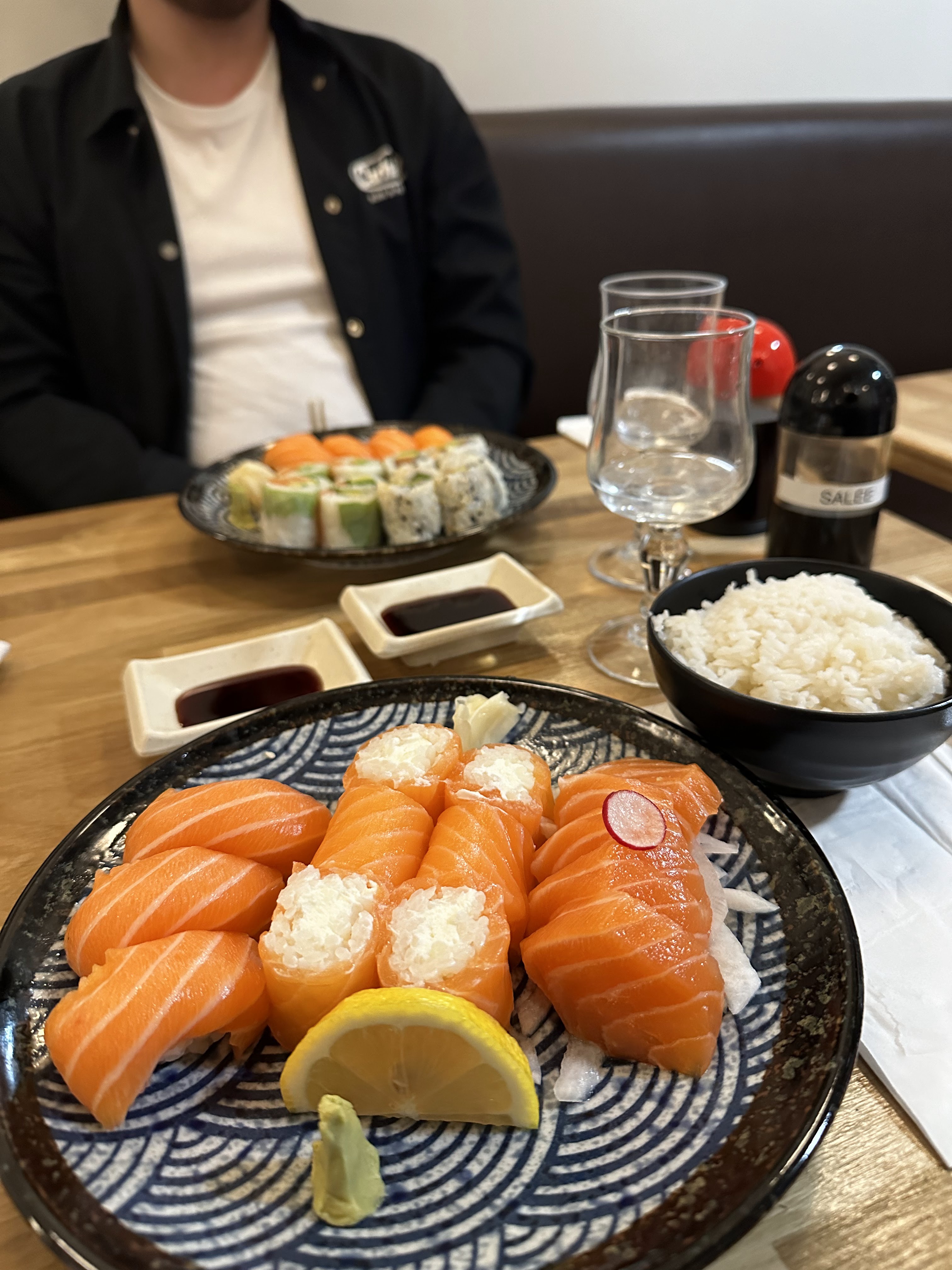 Très bons sushis, j'ai pris un bateau à partager à 2 avec plein de sushis et sashimis au saumon. J'ai jamais vu de bateaux comme ça ailleurs (d'habitude ils mélangent avec des trucs au thon et autres). Je recommande !