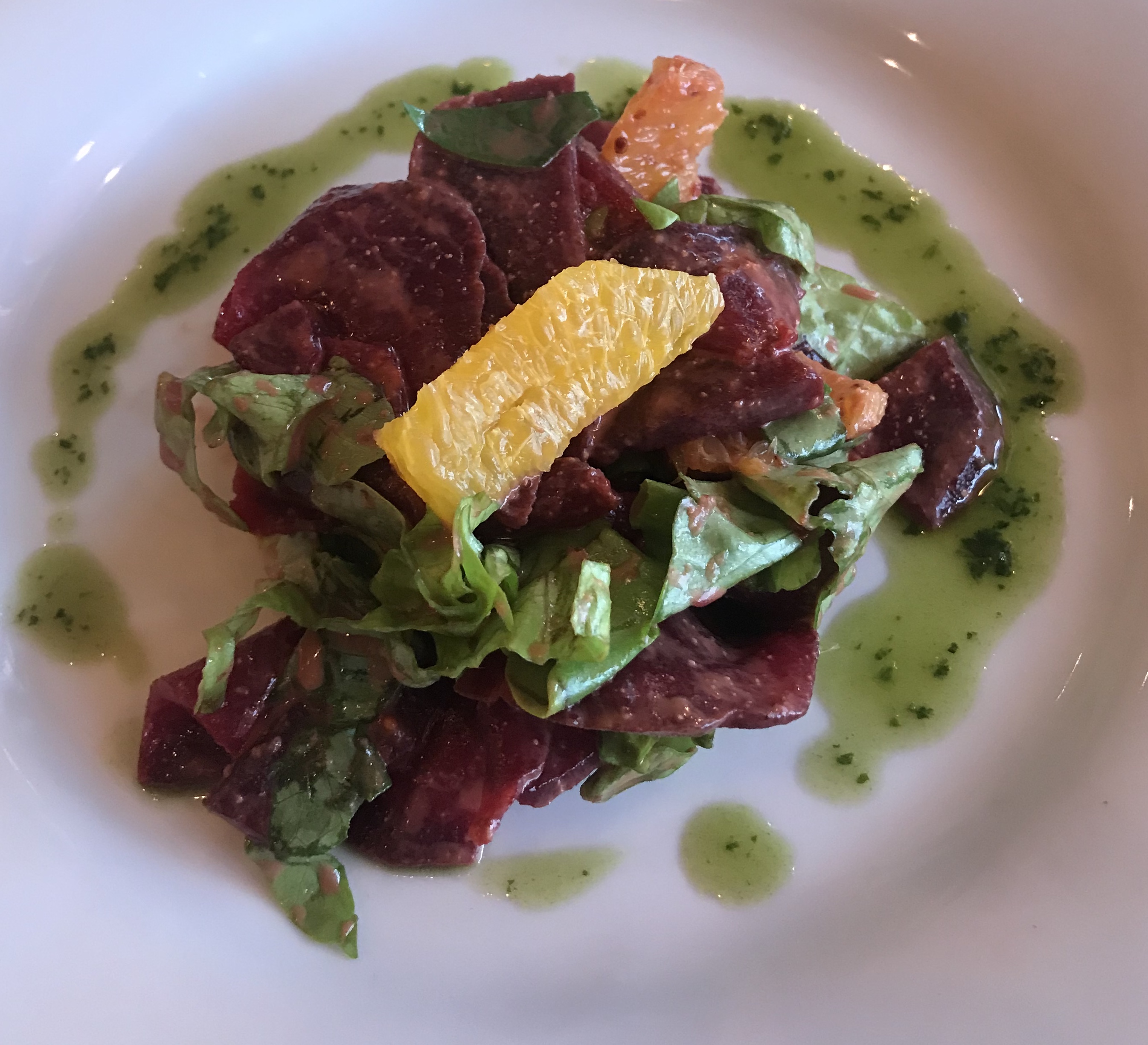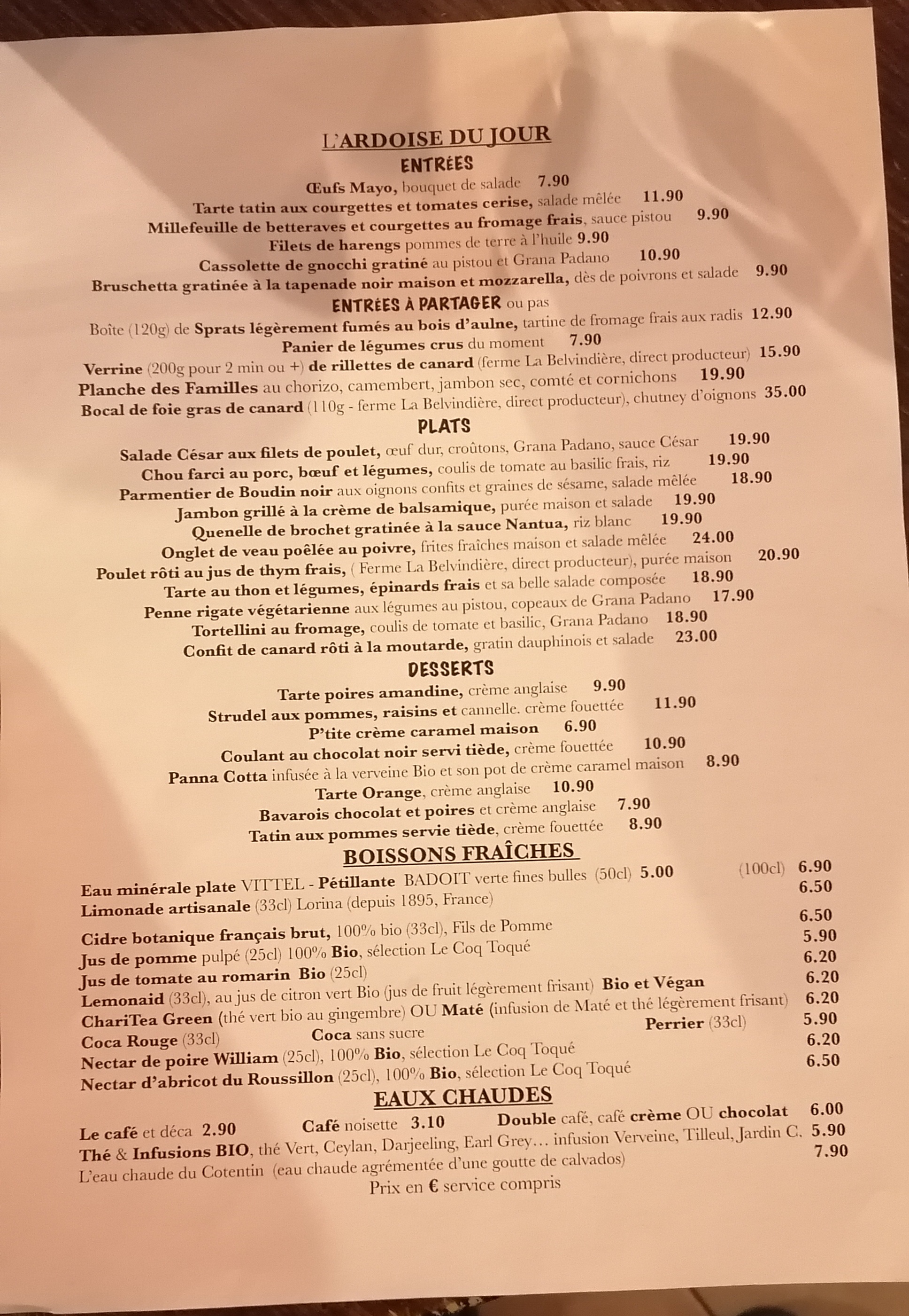 Un joli cadre et un service soigné. Malheureusement, les produits proposés ne sont pas vraiment de saison comme indiqué. En février, une entrée « panier de légumes » avec tomates cerises et concombre. En plat, salade s’effiloche de canard, avec la aussi du concombre. L’association est assez incongrue et pas réussie.