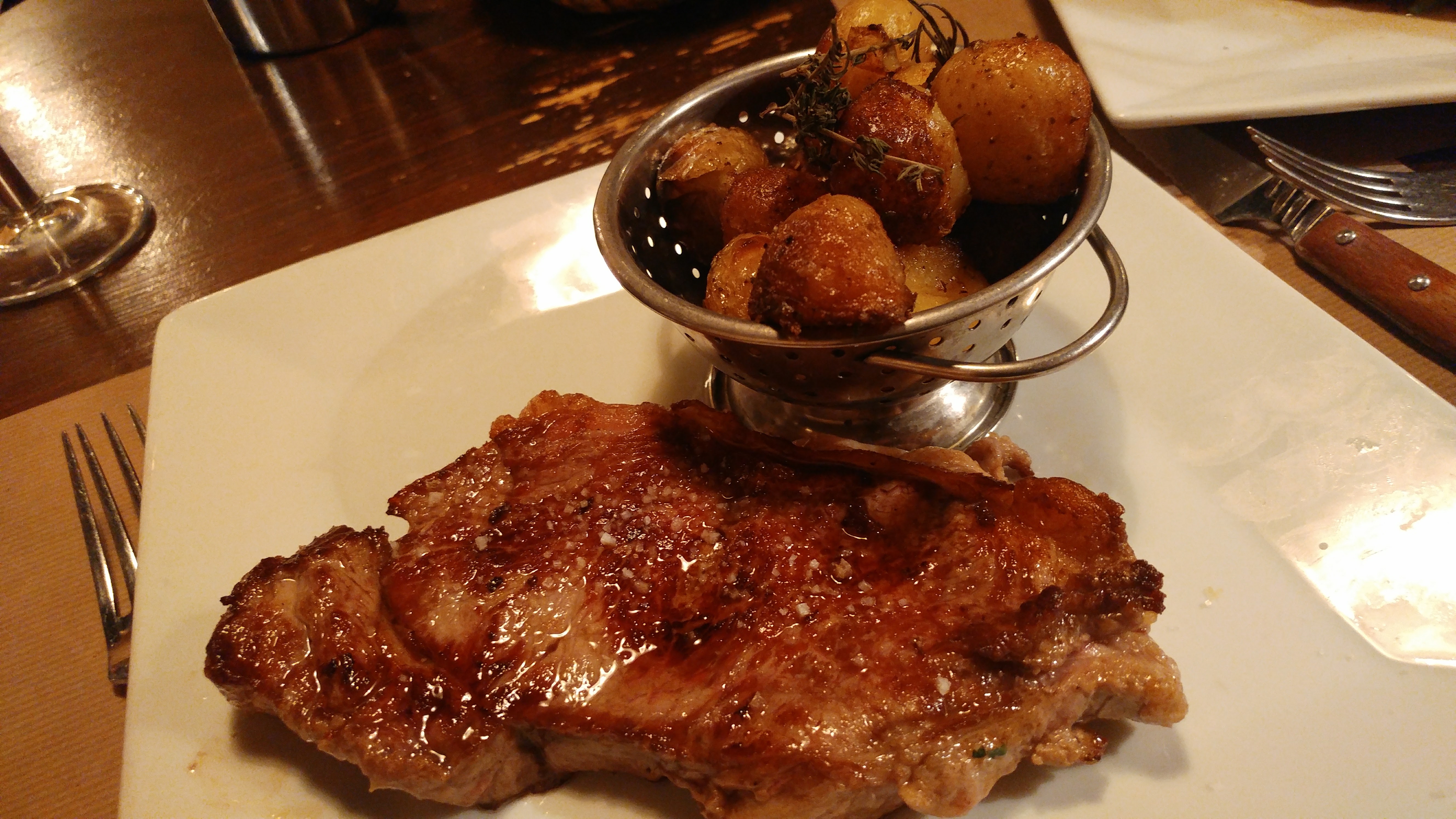 +:cadre sympa, ‘cute vibe’, service -: qualité prix, le faux filet à 25 euros avec beaucoup de nerfs ce qui n’est pas acceptable à ce prix. Pour le reste je n’ai pas essayé.
