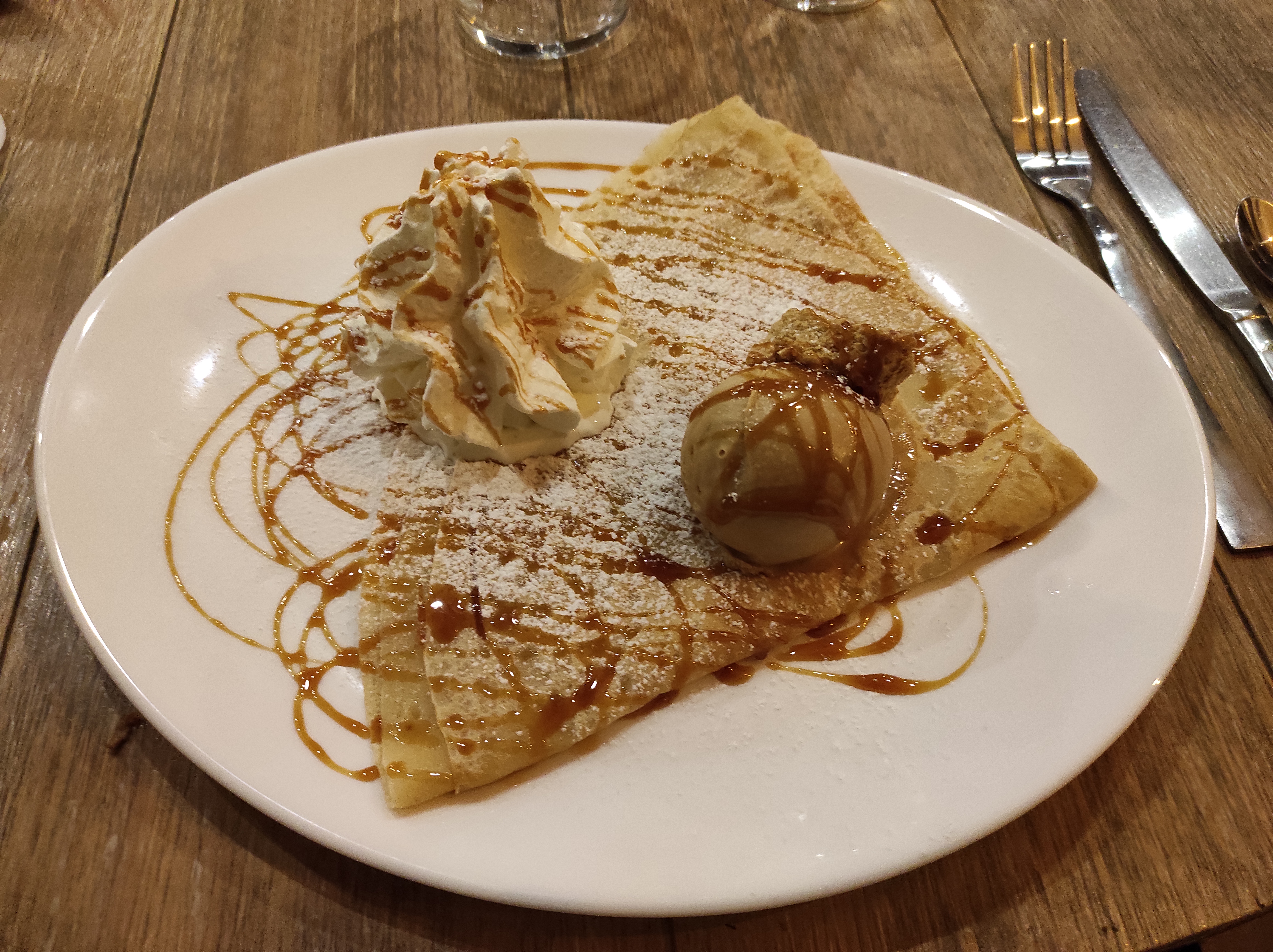 Les crêpes salés sont correctes. Nous avons beaucoup attendu entre le plat et le dessert. Pas moins de 25 mm. Le personnel est sympathique mais 2 personnes au service pour une salle et une terrasse ce n’est pas évident.