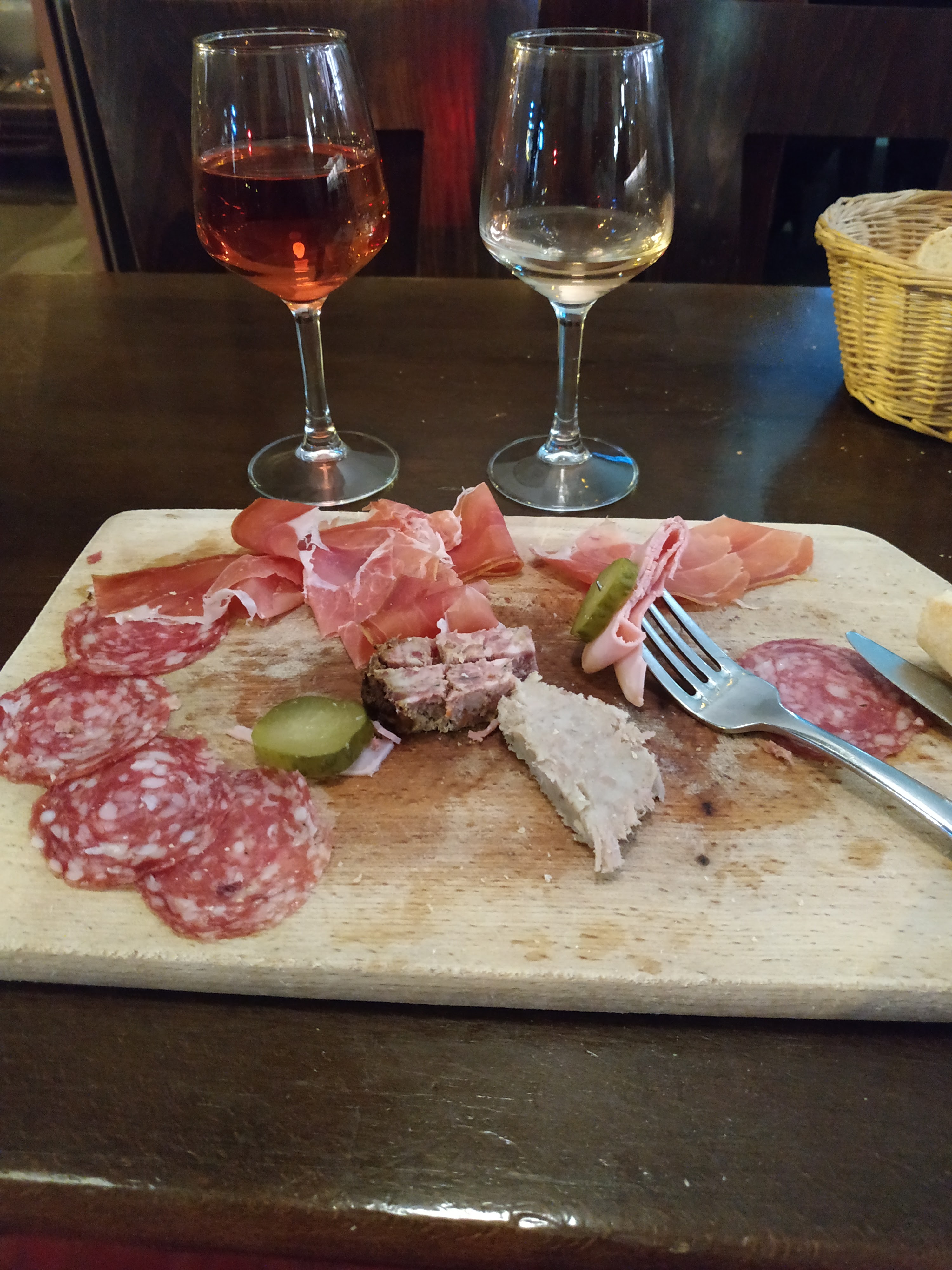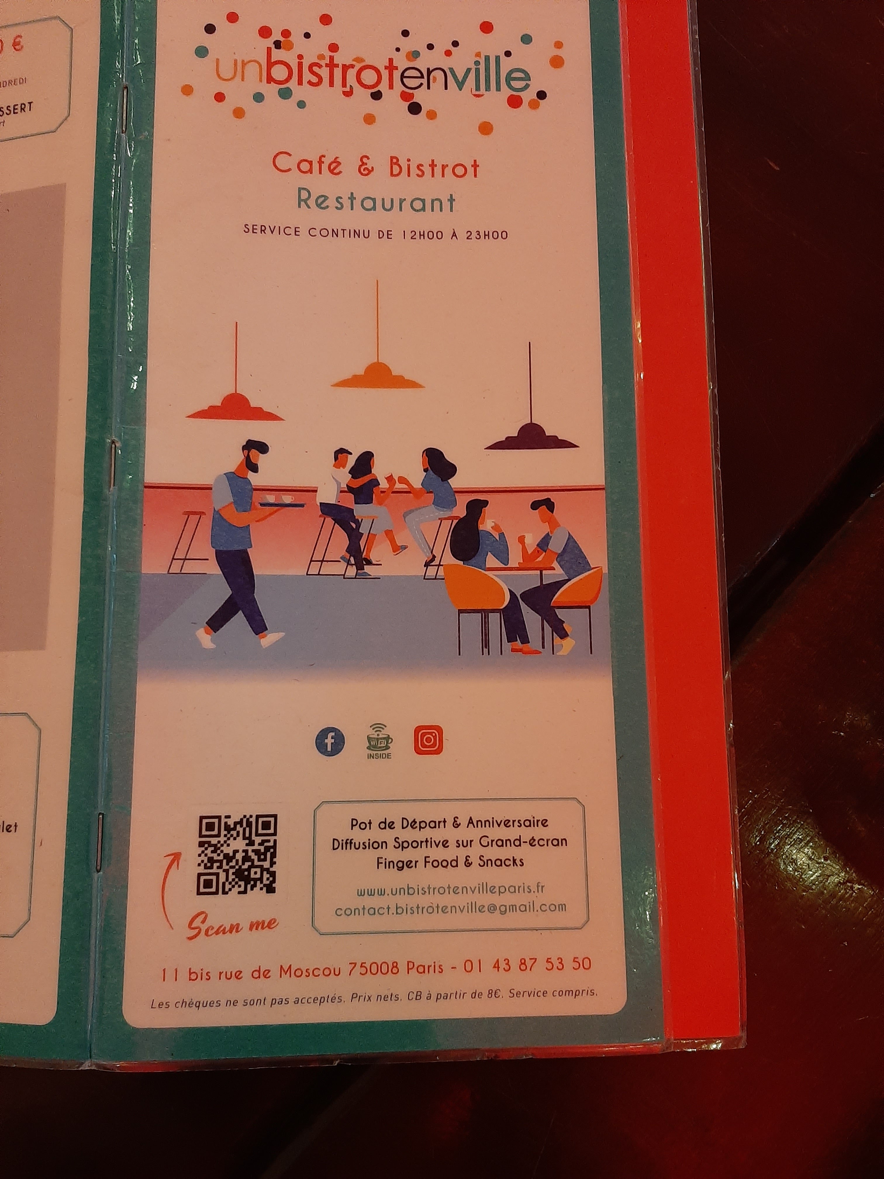 Un cauchemar en ville.insipide.planche de charcuterie sans saveur. Ce n'est pas parce que cela ressemble à de la charcuterie que cela a le goût de charcuterie. jambon de pays, jambon blanc, tranches de saucisson, rillette, pâte de campagne,rondelles de cornichons se battant en duel,salade au grain de sable, sauce salade, pire goût industriel.Les charcuteries de premier prix de supermarchés ont plus de saveur et sont plus gourmandes et goûteuses, les frites industrielles meilleures.Rosé agressif au palais, pas bon, grimace dès la première gorgée, frites trop cuites, pain dorti du congel et passé au four....peut mieux faire surtout au tarif pratiqué, cher. présence d'un chien non guide dans le retaurares, nous reniflant et tournant autour de nos plats. Service inexistant et pas sympas. Un client âgé déplacé parce qu'il buvait un café en regardant le match pour nous laisser sa table sous le Mensonge que nous devions dinés en dépit de nos protestations de le laisser à sa table car nous étions là pour voir le match et prendre un verre. Très embarrassés, nous avons rendus la table au client qui a refusé. Ce monsieur âgé a passé sa soirée jonchée sur une chaise haute au bar..aucune considération pour le client.Serveurs occupés à boire au comptoir, à manger+ conversations personnelles,voix couvrant celles des clients.Assiette de frites renversée. Les frites perdues récupérées et mangées par le serveur. Le bistro ferme à1h. 22h20, les serveurs rangent le bar, poubelle et caisse de bouteilles vides descendues au sous sous derrière notre dos.l'ecran de TV saute toutes les 3-5 minutes Ce bistrot n'est plus ce qu'il était dans les années 2000. Étudiante,j'y ai passé des heures à déguster leurs gourmandises, petits déjeuners exceptionnel entre amis qu'à me concentrer sur mes cours dd'économie.Même l' avantage d'être situé sur une petite place type de village et dans notre rue n'est pas un atout. Le décor ne se mangeant pas.. .rien d'exceptionnel.soirée à oublier. Abonnement RMC dpirt à prevoir. bistrot à ne pas mettre dans ses petites adresses.une torture😭😭😭😭😭