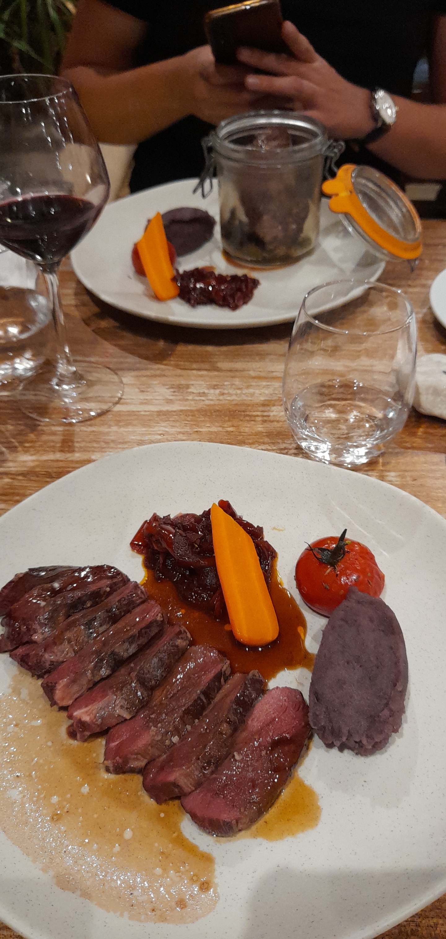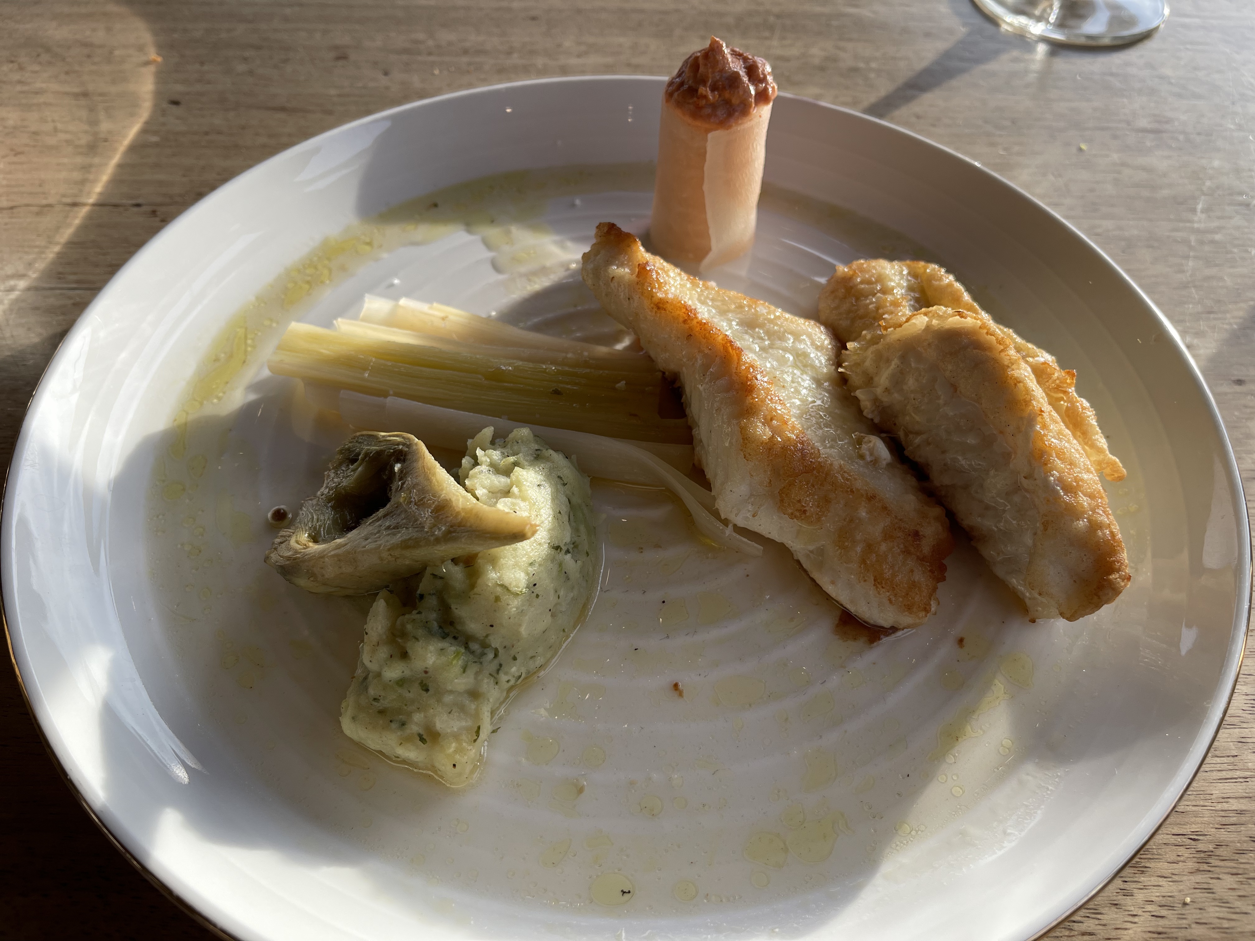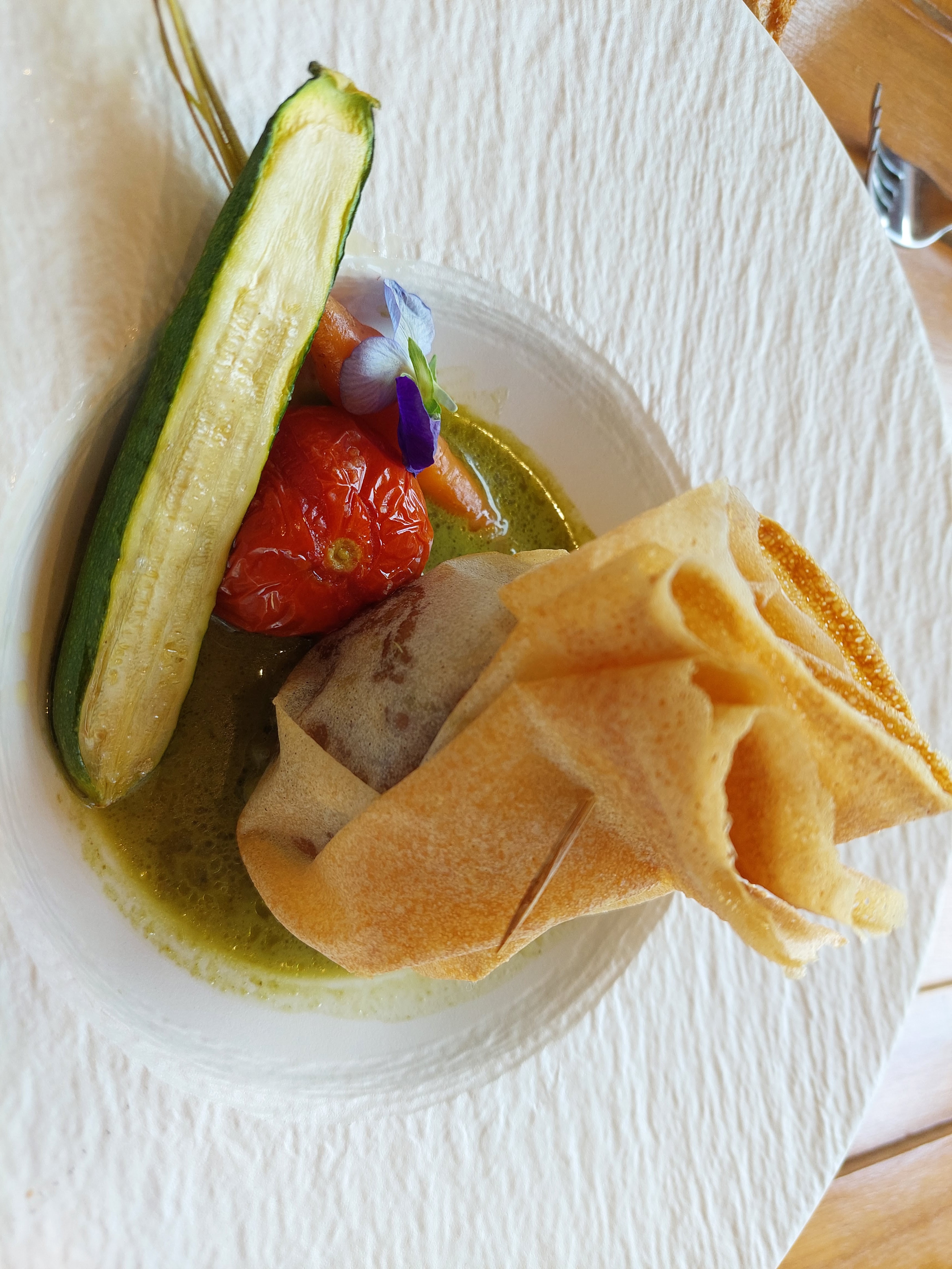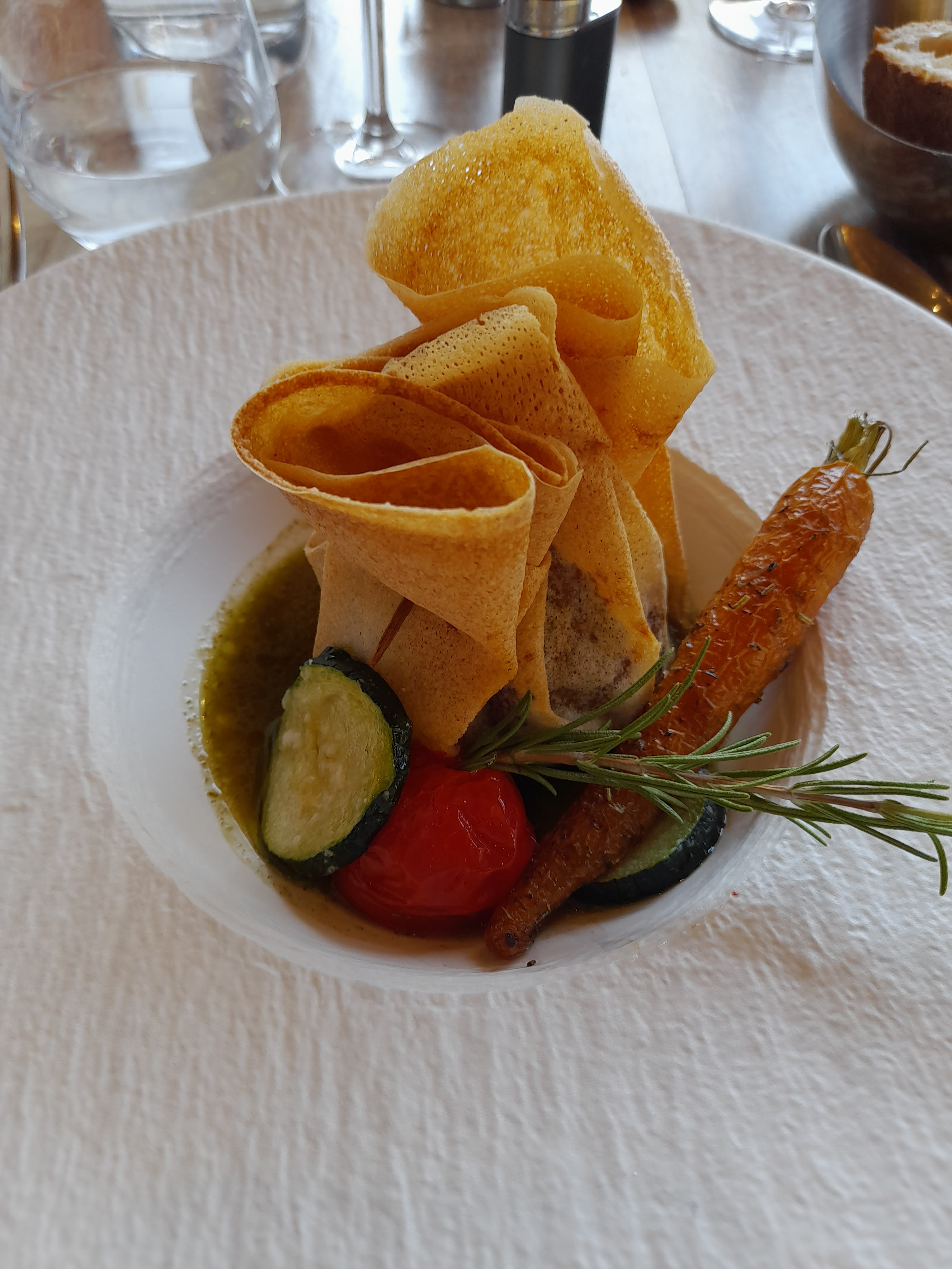 Tout était parfait, apéritifs originaux, très bonne cuisine faite avec des produits frais et un accueil chaleureux et attentionné. Un très bon moment passé même si la pluie nous a empêché de profiter de la terrasse l’intérieur est très joli aussi.