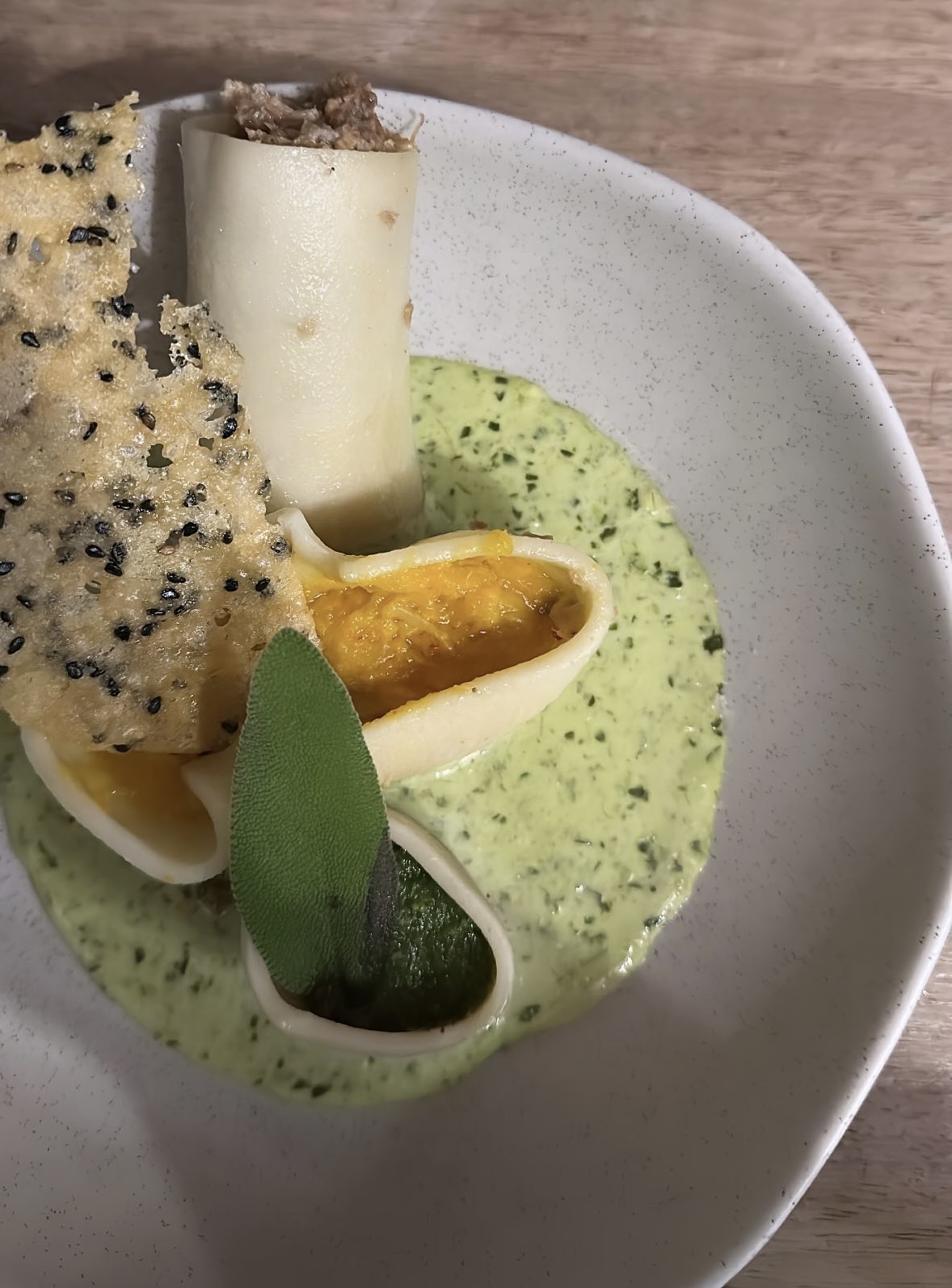 Une pepite ce restaurant que nous avons découvert ce week-end, ca fesait longtemps que l on essayait de réserver sans succès et maintenant on comprend pourquoi. Les patrons sont d une gentillesse, beaucoup de bienveillance apres une journée de commerce ,le jeune homme nous a bien fait rire et ca fait du bien..... En terme gustative,ca fesait très longtemps qu on avait pas ressenti cette explosion de saveurs dans la bouche,même mon mari a mangé un CARPACCIO de poisson il était conquis. Les conseils pro vont avec et vous déconseille de prendre un plat si vous enlevez 1 aliment faute de déséquilibre de saveurs. Bref je conseille fortement ce restaurant si vous voulez bien bien bien mangé.
