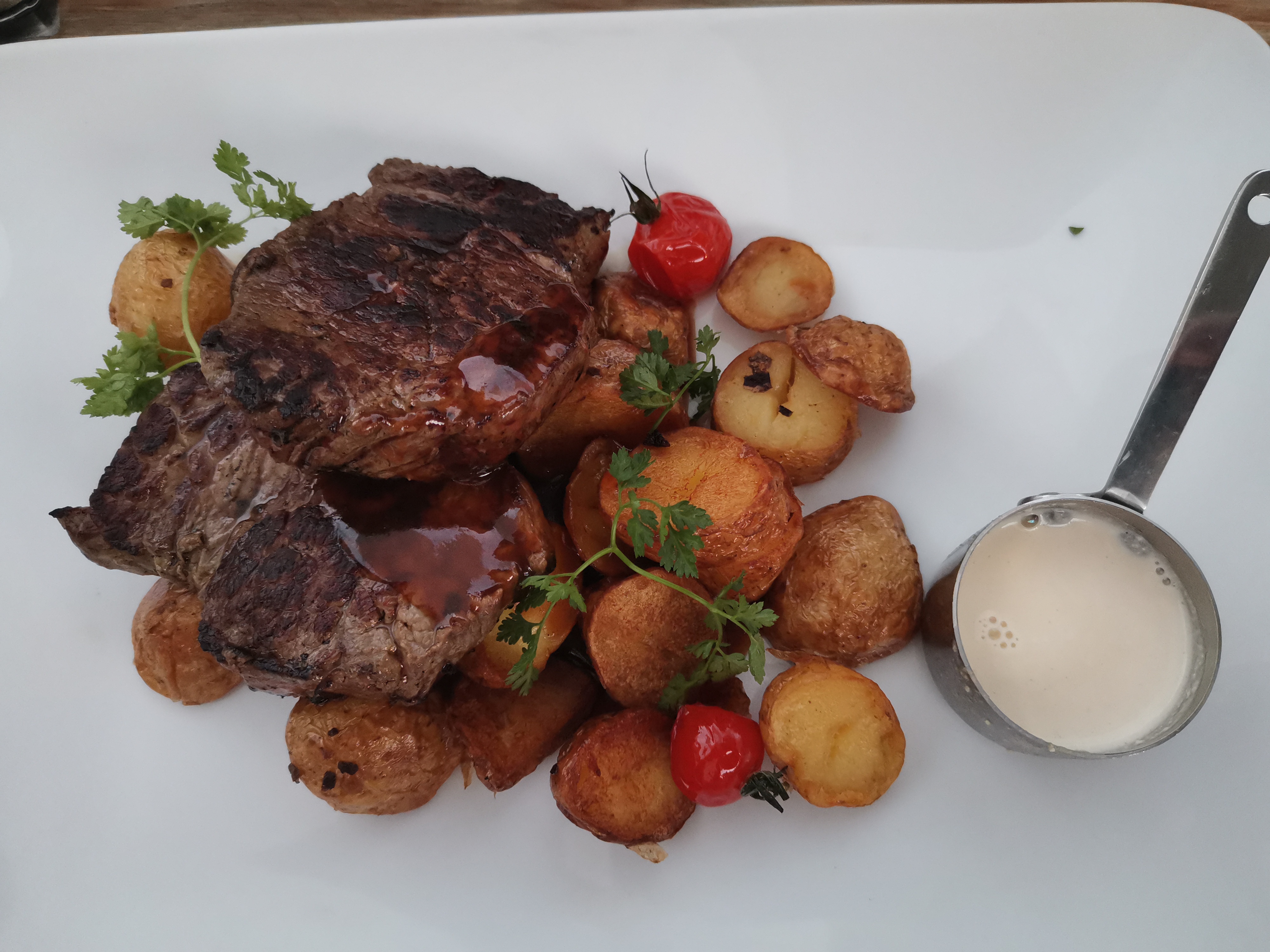 Restaurant sympa bonne cuisine le seul souci c'est la qualité de la côte de bœuf je l'ai fait changer à cause du manque de tendresse mais la deuxième était un peu mieux mais sans plus. Éviter donc, la côte de bœuf.