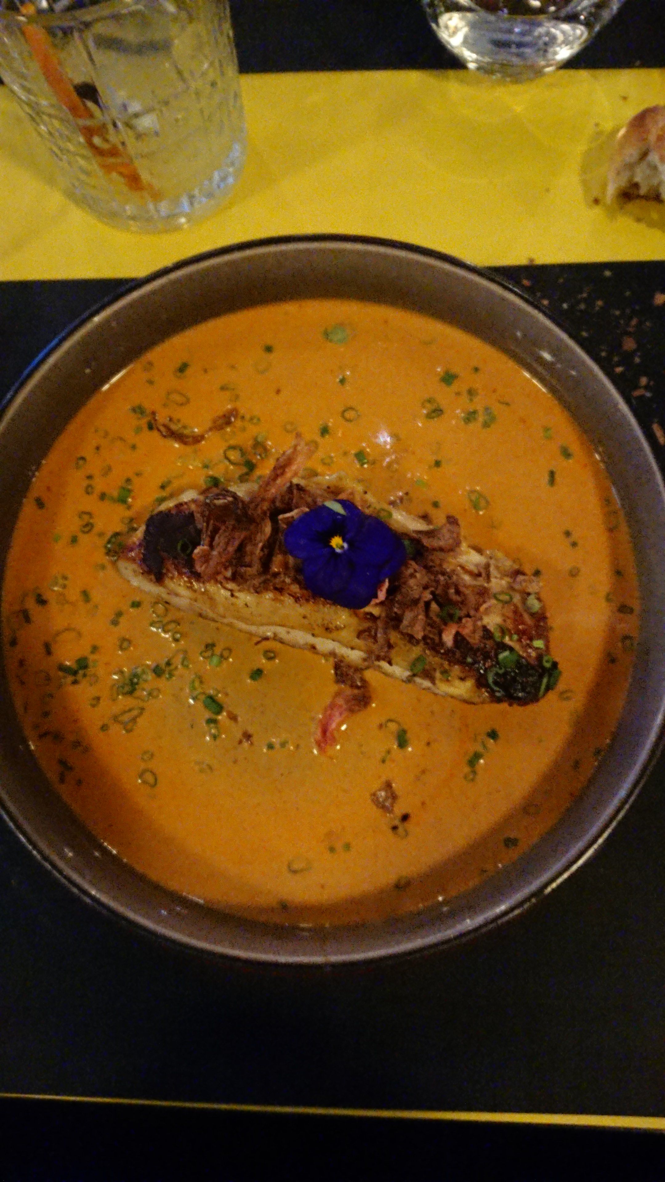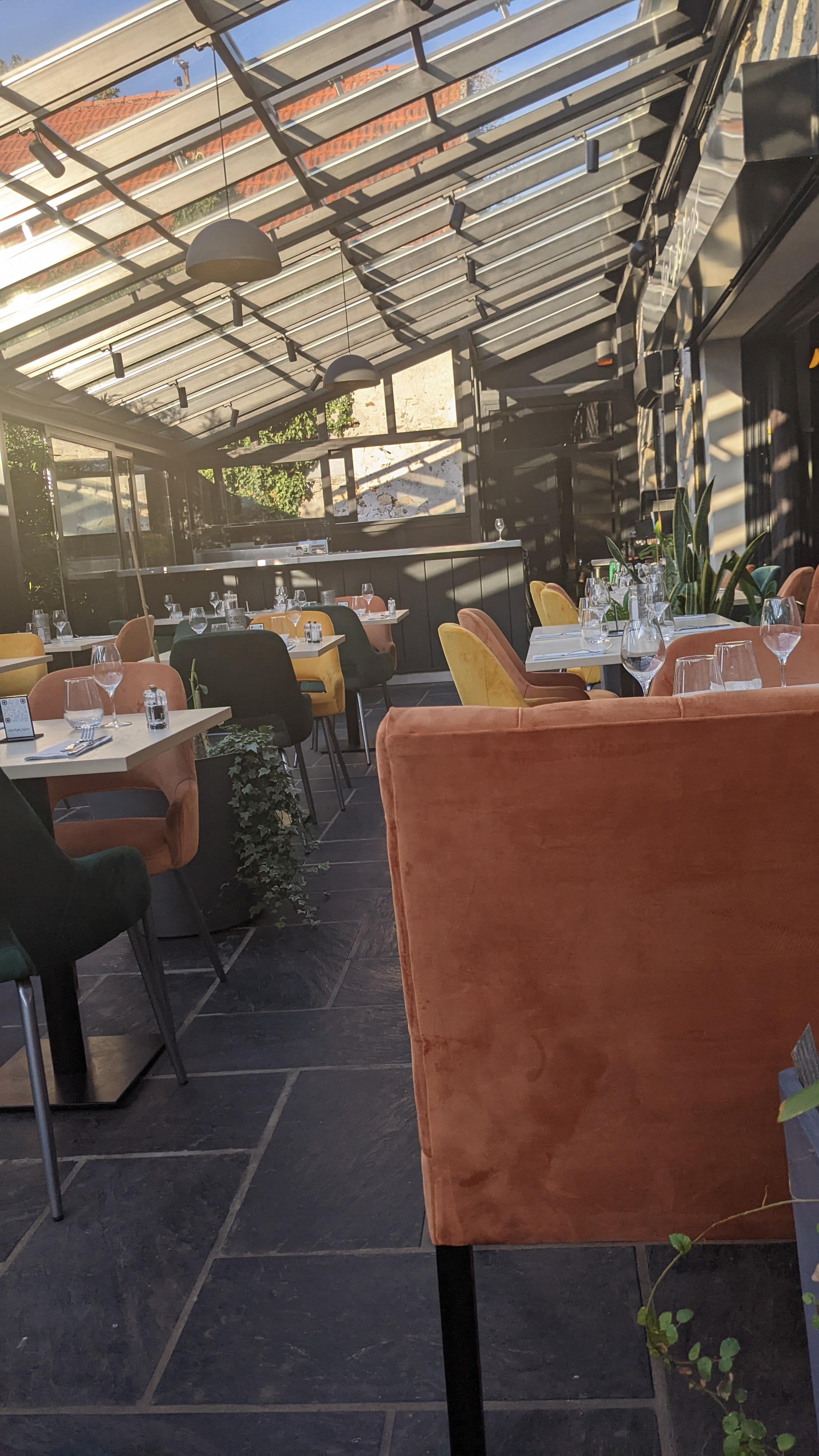 Dîner en couple un samedi soir. Très beau cadre sous la verrière avec chauffage adapté (étant donné les températures fraîches !). Personnel souriant, avenant et efficace (servi rapidement). Cuisine raffinée, on sent le frais et fait maison. Seul petit bémol : Les prix 🙄 (à partir de 12€ une entrée et un plat varié entre 20 et 30€).