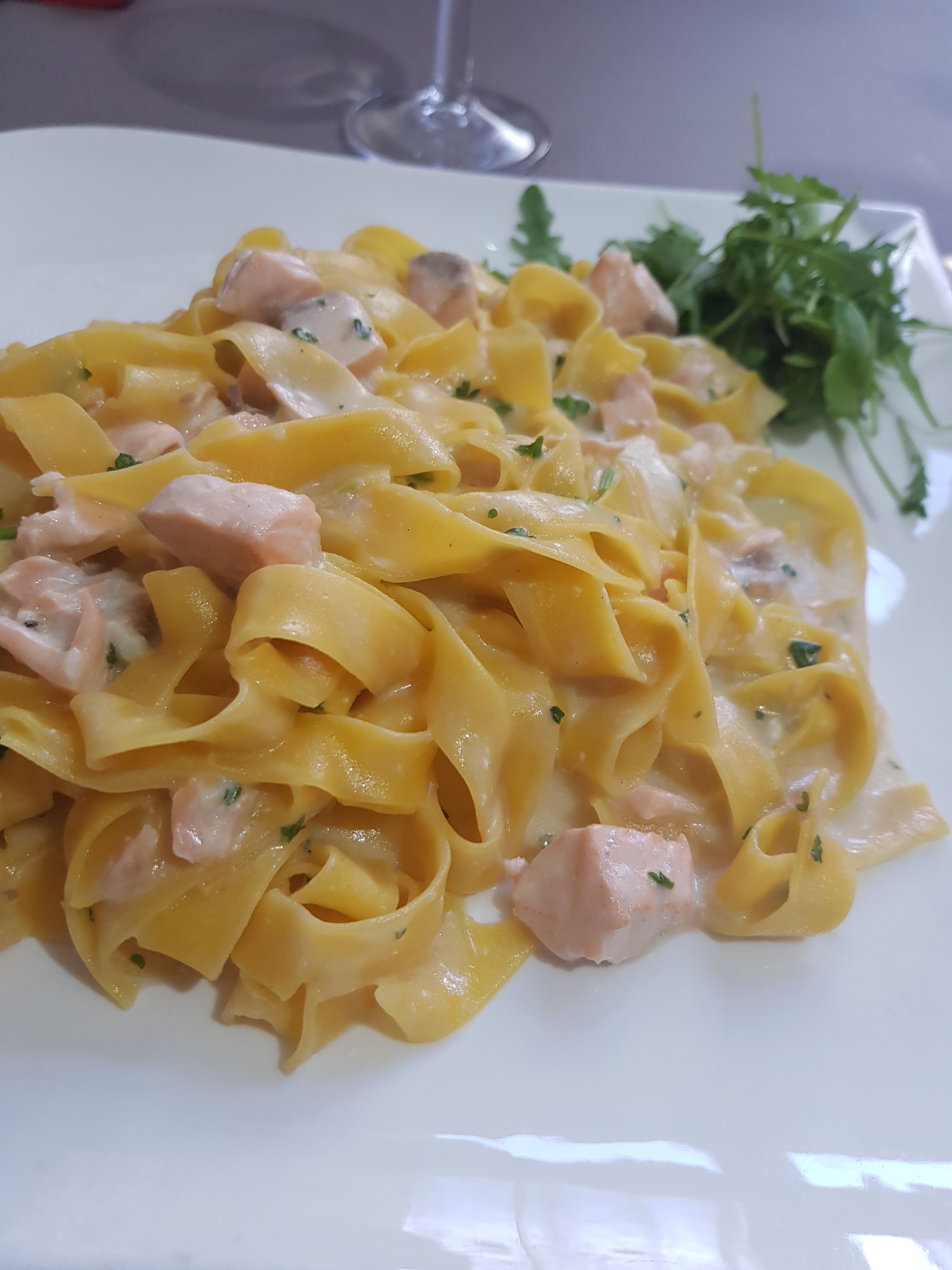 Le saumon était bon sur les pâtes Mais manque un peu de cuisson pour les pâtes sinon bonne ambiance ! Excellent ✌🏽 très bien servis 👍🏼 je goûterai à une pizza la prochaine fois