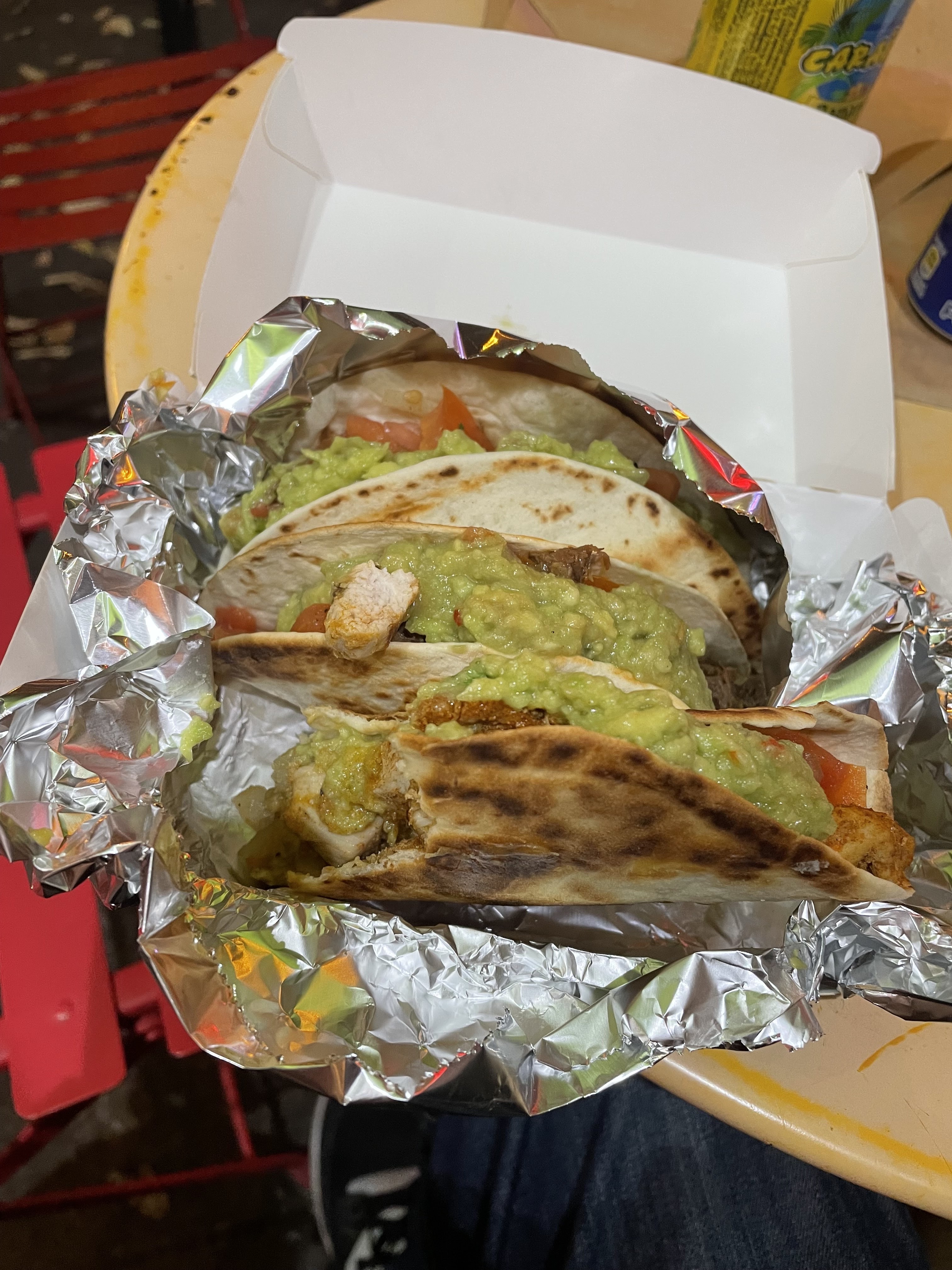 La première fois absolument pas convaincu, J'avais pris une sorte de tacos en gallette mélanger avec du maïs. C'était vraiment pas mon truc. La deuxième fois j'y suis allé et j'ai pris d'autres trucs avec du guacamole avec des chips à grignoter ça c'était vraiment bien