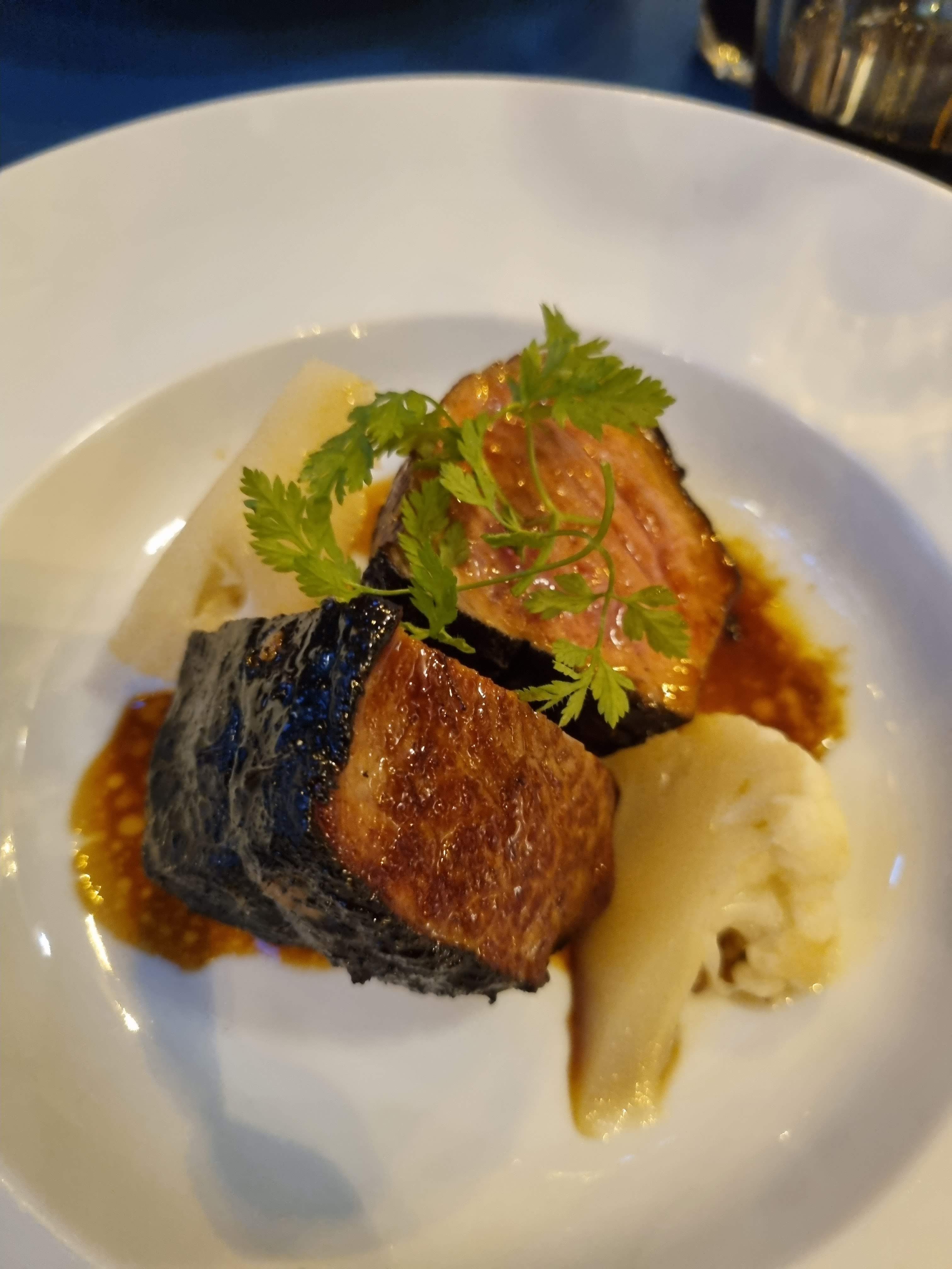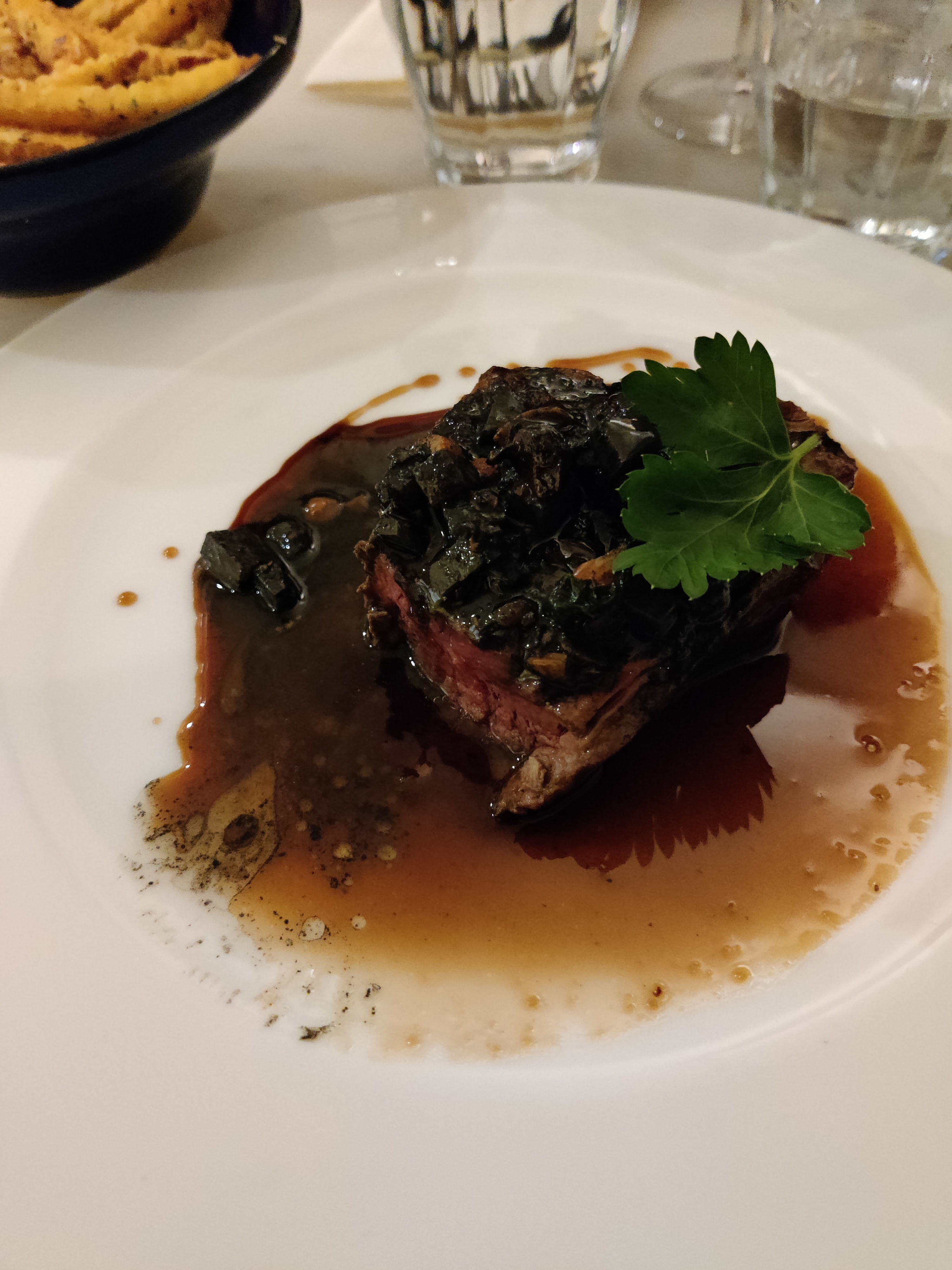 Sauce avec goût de brûlé, accompagnement sec, mauvaise cuisson de la viande pour 3 d'entre nous. Oui ça se mange mais à 45 euros le plat, simplement pas à la hauteur. Toilette avec odeur d'égout. Très bon service cependant.