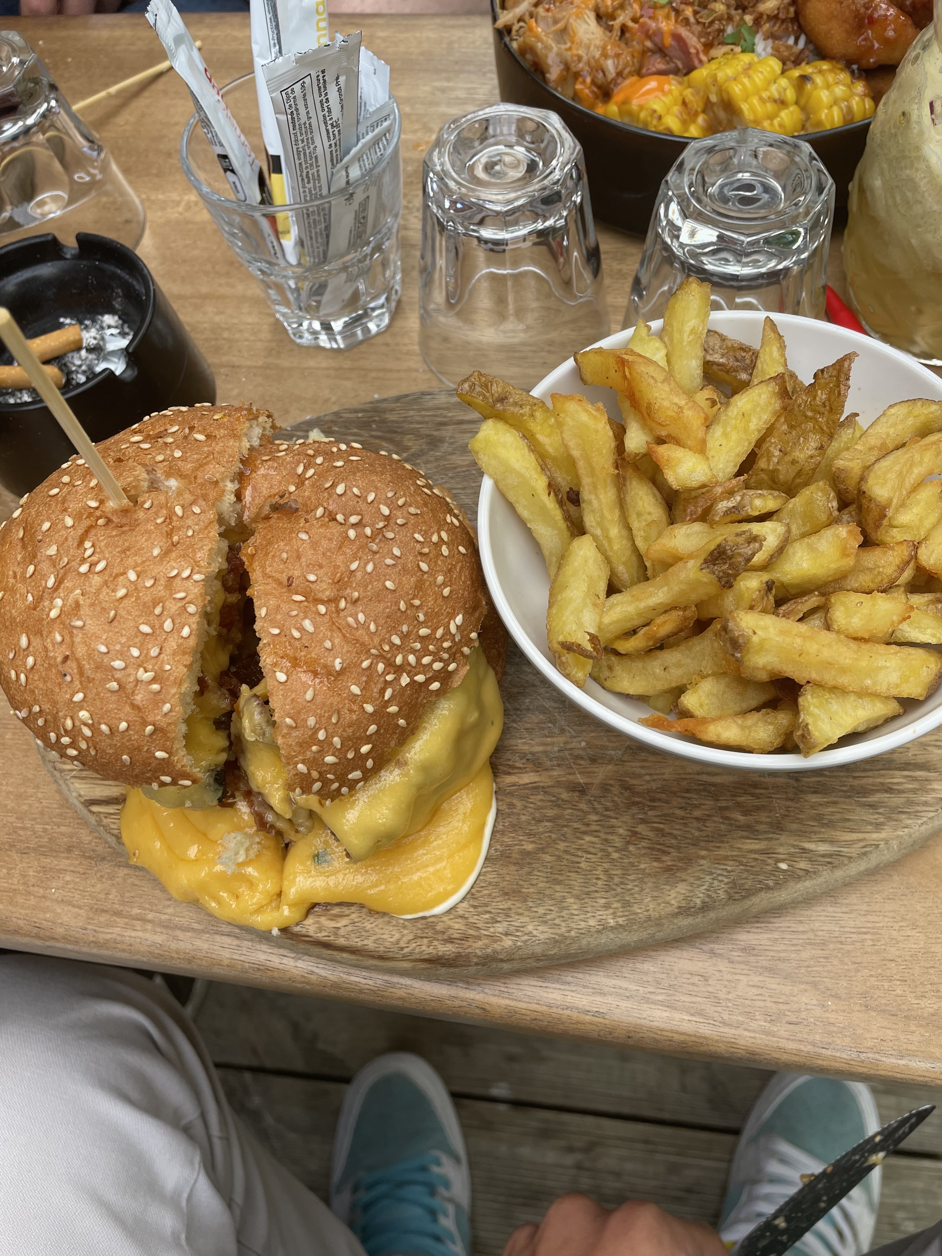 Nous sommes venu en couple manger un midi. L'ambiance est la mais on a été place dans un petit coin serrer avec d'autres gens en plein soleil. Les burger était très bon et le frite maison aussi avec un peu trop d'huile ! J'ai bien manger et sortie repu de mon repas.