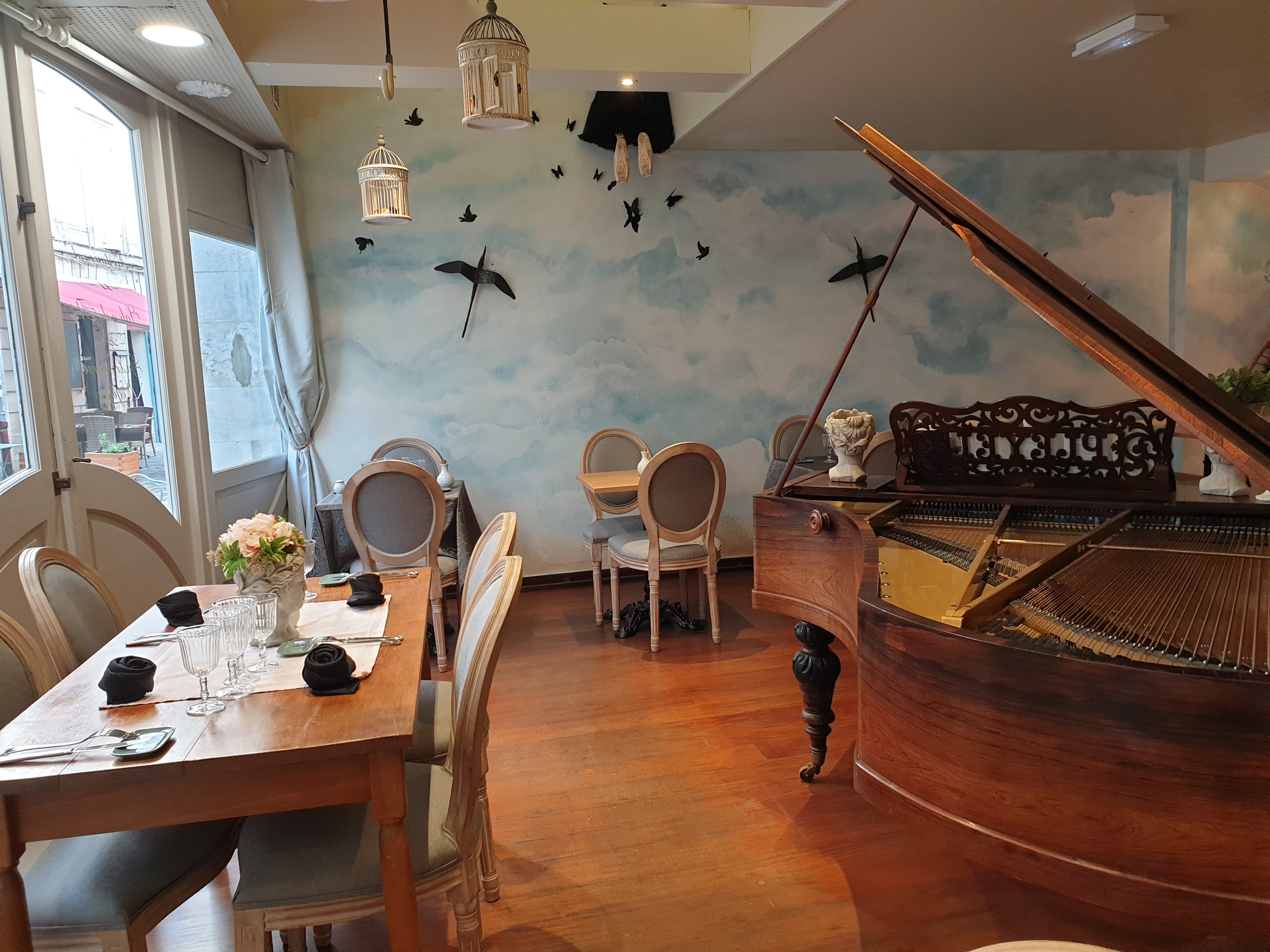 Très joliment décoré, un air de Les Chroniques de Bridgerton ! Avec deux amies, nous avons été très bien accueillies par la gérante du restaurant 🥰 J'ai choisi un brunch n'ayant pas petit déjeuné. Il était composé d'une plat, d'un jus d'orange pressé, d'un dessert succulente, et d'une boisson chaude. Attention, le plat Croque du piano est très light, avec une grosse salade diversifiée et un seul croque monsieur vegan pour essayer de rassasier. Malheureusement j'étais restée sur ma faim après ce plat. Fort heureusement, le dessert était très appétissant : des pancakes au sirop avec du chocolat fondu, et des fruits rouges à tomber 😍 Pour 21€ le brunch, je pense que le plat mérite d'être un peu plus goûteux ! Pour les personnes qui souhaitent prendre un brunch ultra light, vous êtes au bon endroit ! 😊 Je remercie pour la très grande gentillesse de la gérante ! 😍