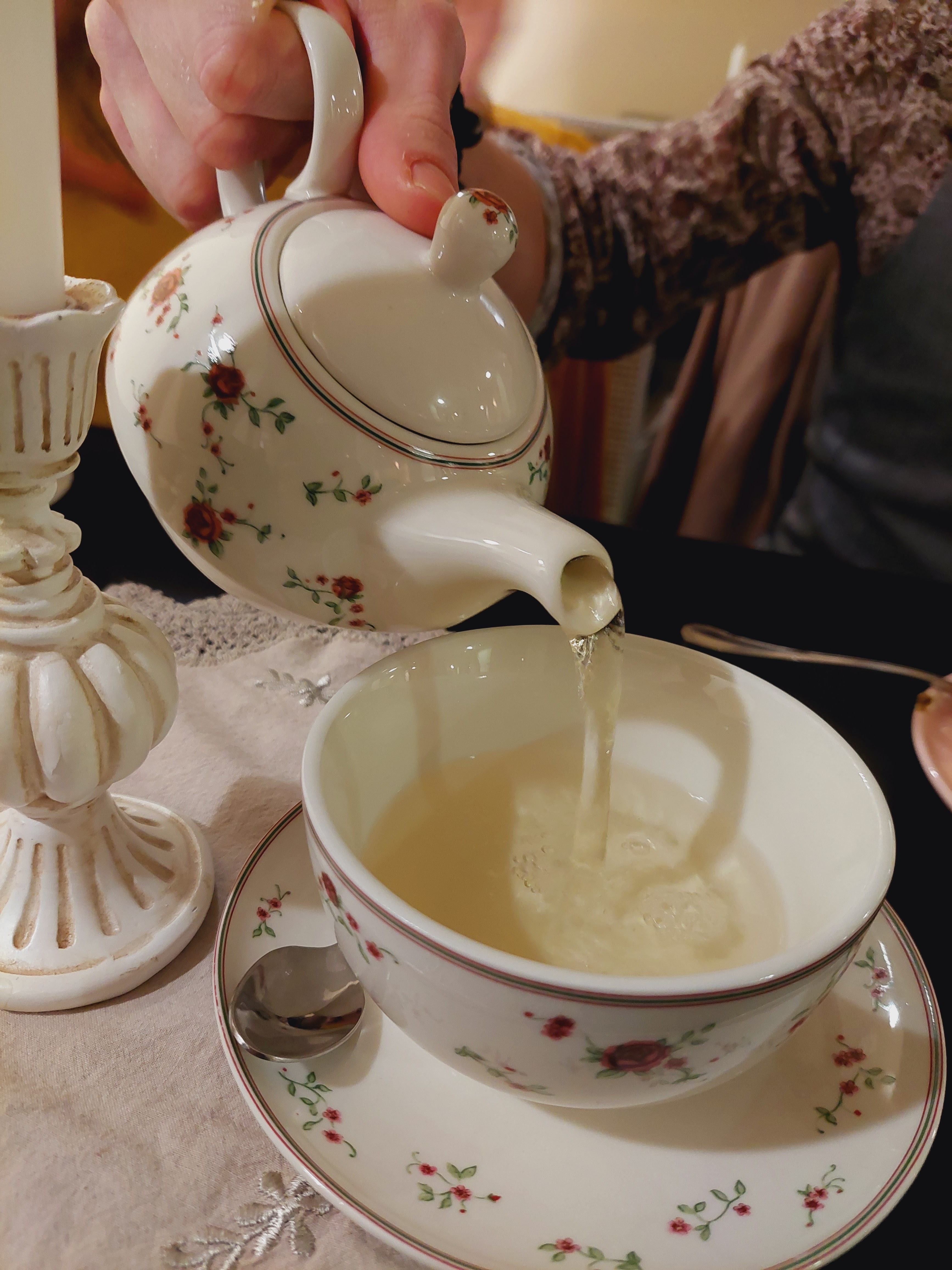 Je me croyais en Angleterre et le roi charles allait débarqué pour le tea time. J'ai adoré la musique en entrant cornemuse et la tenue des serveuses assortie au décor