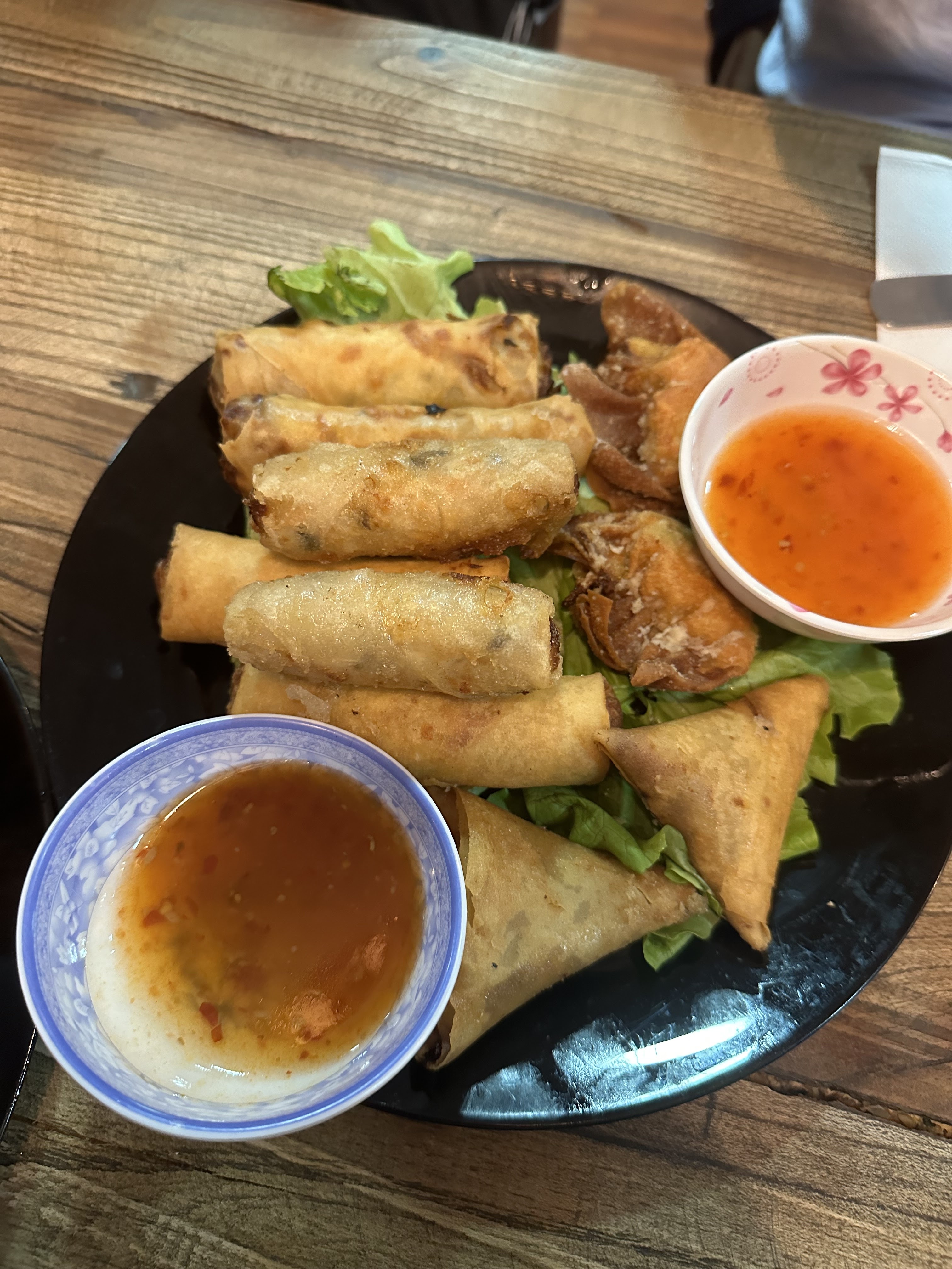 Malgré la bonne volonté de l'équipe et le geste commercial de l'établissement, ils sont submergés par le nombre de clients. Beaucoup d'attente, pas assez de carafe d'eau pour toutes les tables. La nourriture manquait de saveurs et les nems et autres beignets étaient trop huileux.