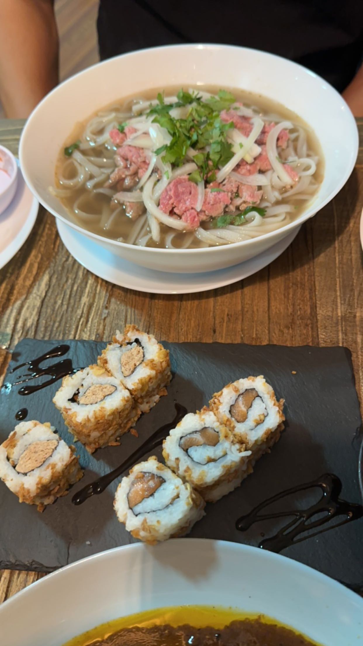 Nous sommes venus un samedi soir, assez tôt. Nous avons commandés des raviolis et nems poulet en entrée. Très très bon! En plat nous avons pris un Pho et la soupe Tom yum. C’était excellent. J’avais une appréhension sur le Pho mais finalement je ne regrette pas du tous. Nous reviendrons c’est sûr et certain. Le personnel est très gentil et accueillant. Allez y les yeux fermés