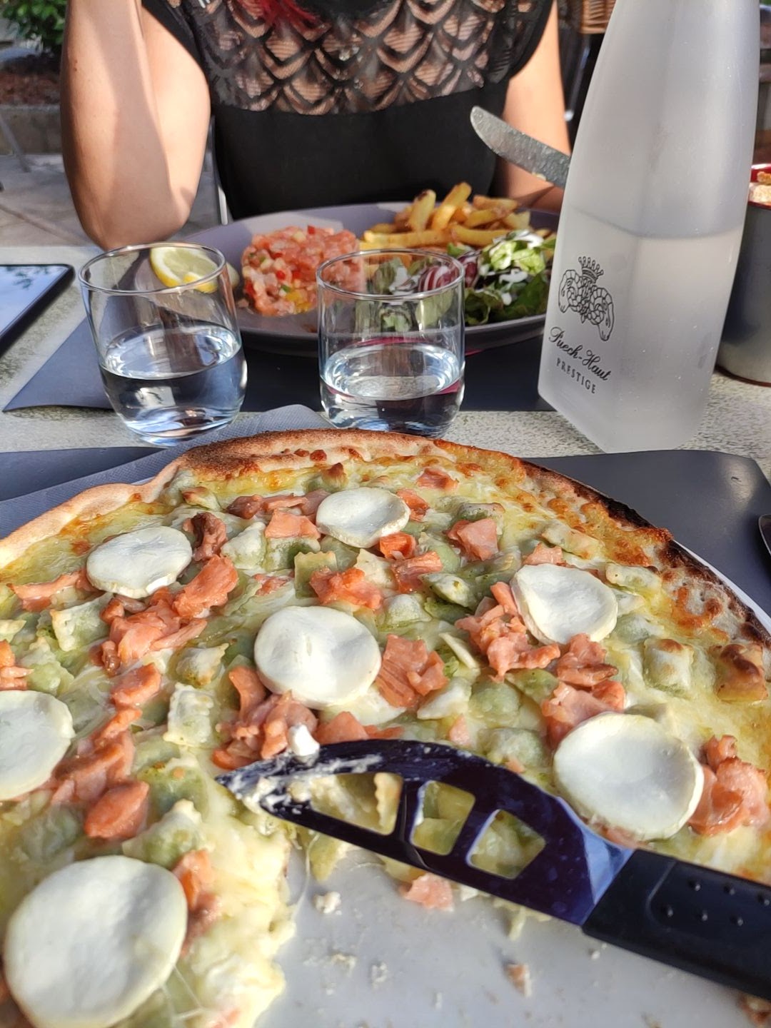 Déçus ! Trop de fumeurs en terrasse, asphyxiés pendant le repas. Pizzas quelconques, pas d'olives, pas d'aromates, pizza 3 fromages = raclette! Conseils: faites une zone fumeurs vous avez une terrasse gigantesque. Sinon service sympa et efficace malheureusement c'est insuffisant.