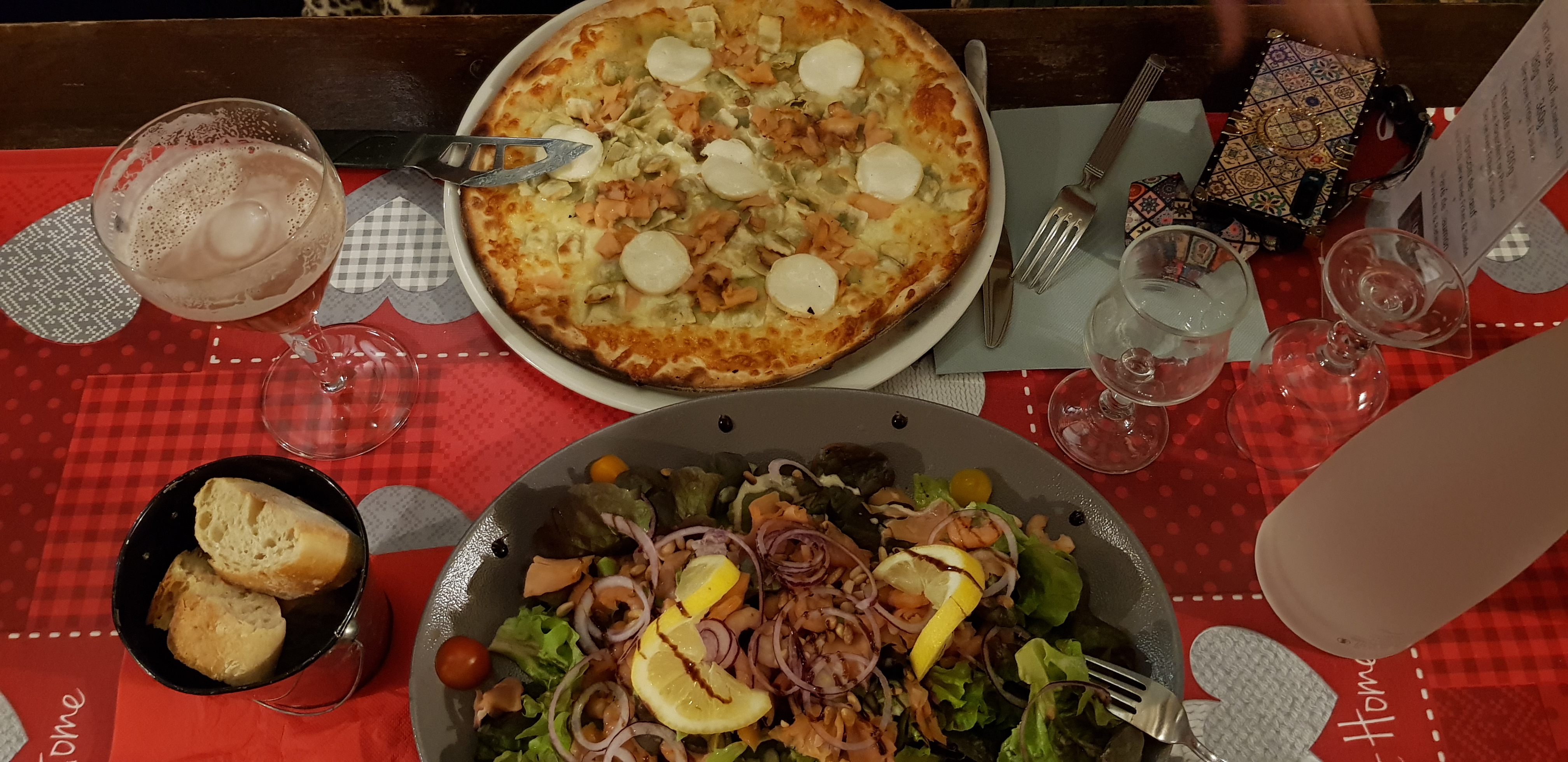 Lieu magique, pizza très bonne , salade la raviole sympa et original, brick reblochon qui n est pas vraiment ce à quoi on s attend mais qui est excellent , petit raté sur la cuisson du filet mignon (ça arrive). Patron et personnel très sympa. Vente de vin au miel et epice a la sortie que je recommande également. À refaire ...