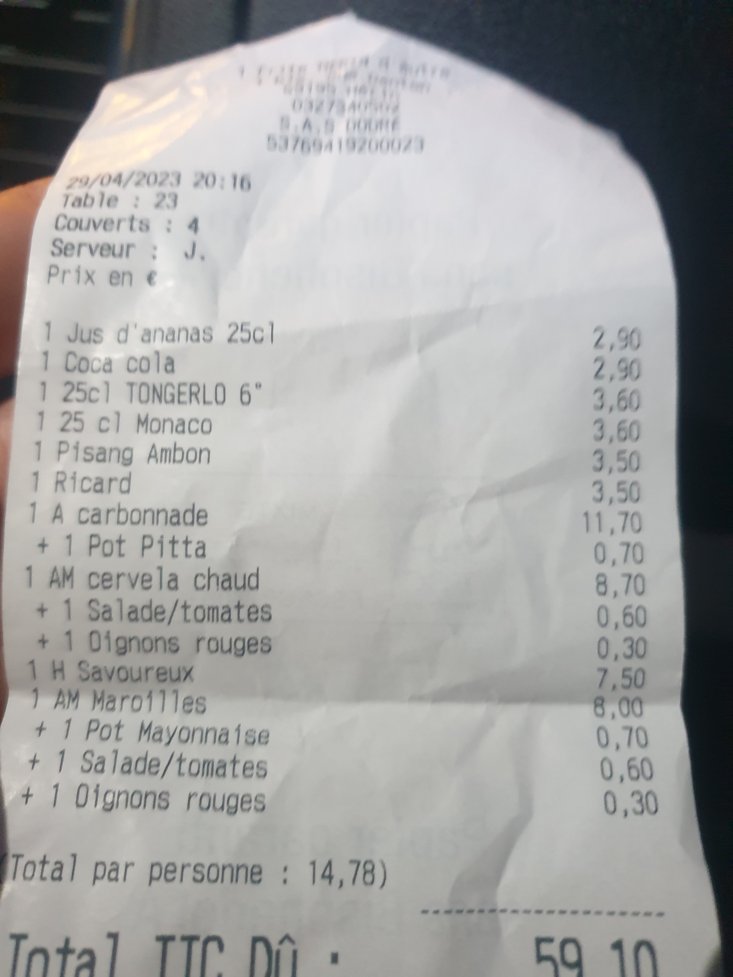 Commande à emporter ce soir, une commande de 52 euros (pour que vous sachiez de qui il s’agit), je n’ai pas pu manger ce soir car ma commande a été oublié ! Tout le monde à manger sauf moi. Habitant à 15 minutes d’Herin nous n’avons pas été rechercher ce qu’il manquait pour ne pas perdre 30 minutes aller-retour. Pas la peine de nous rembourser « la prochaine fois » car il n’y en aura pas.