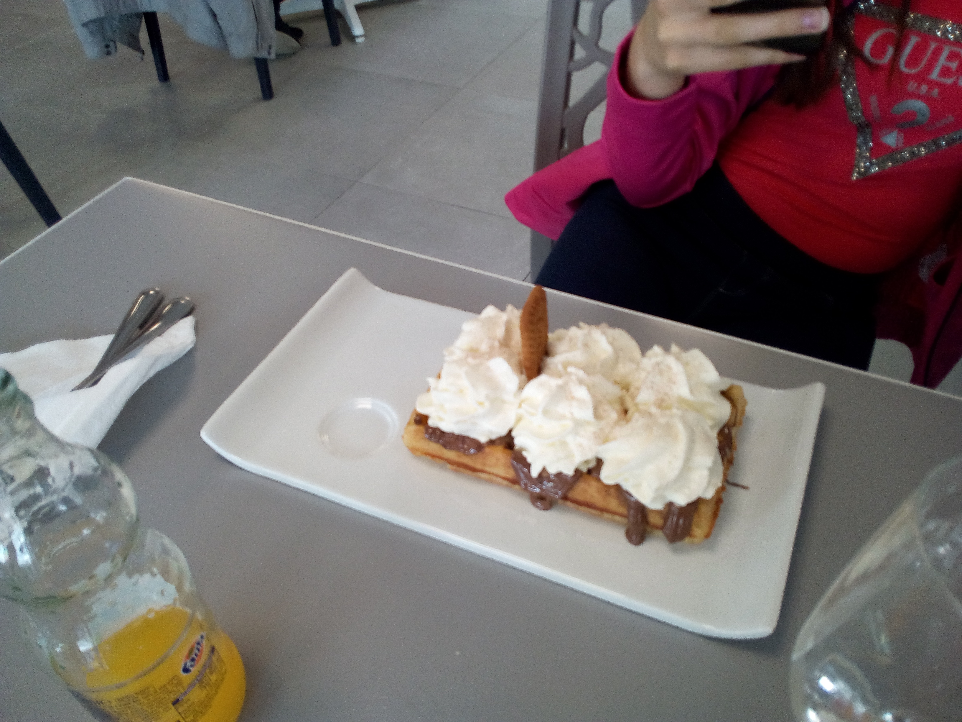 Wouaw. Grand parking. Ultra propre. De la place . Service à table. Personnel hyper sympa. Large choix. Service rapide. Un sans faute