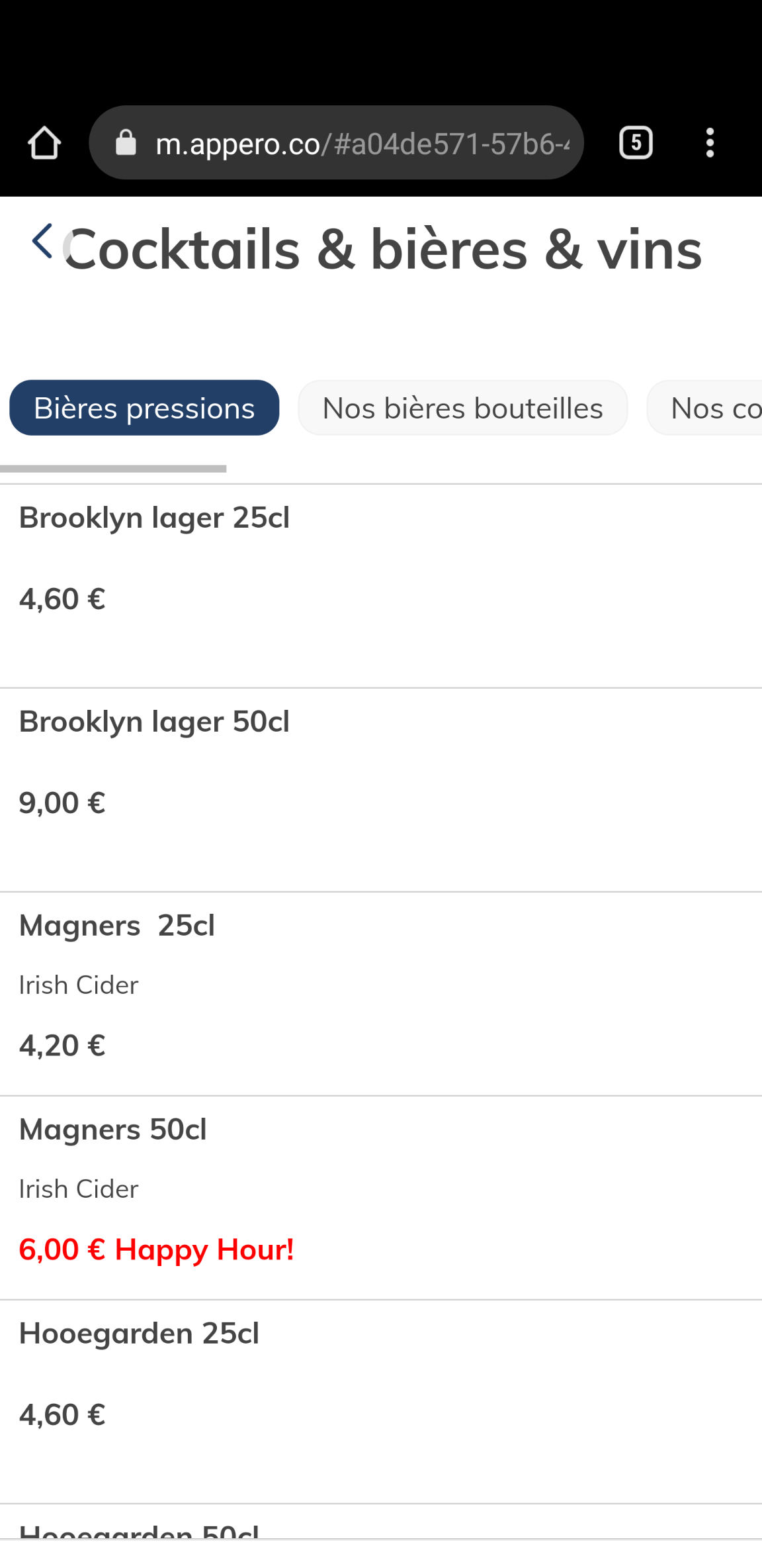 Les cocktails sont à 6€ en happy hour, il y a un large choix et ils sont super bon , je recommande !