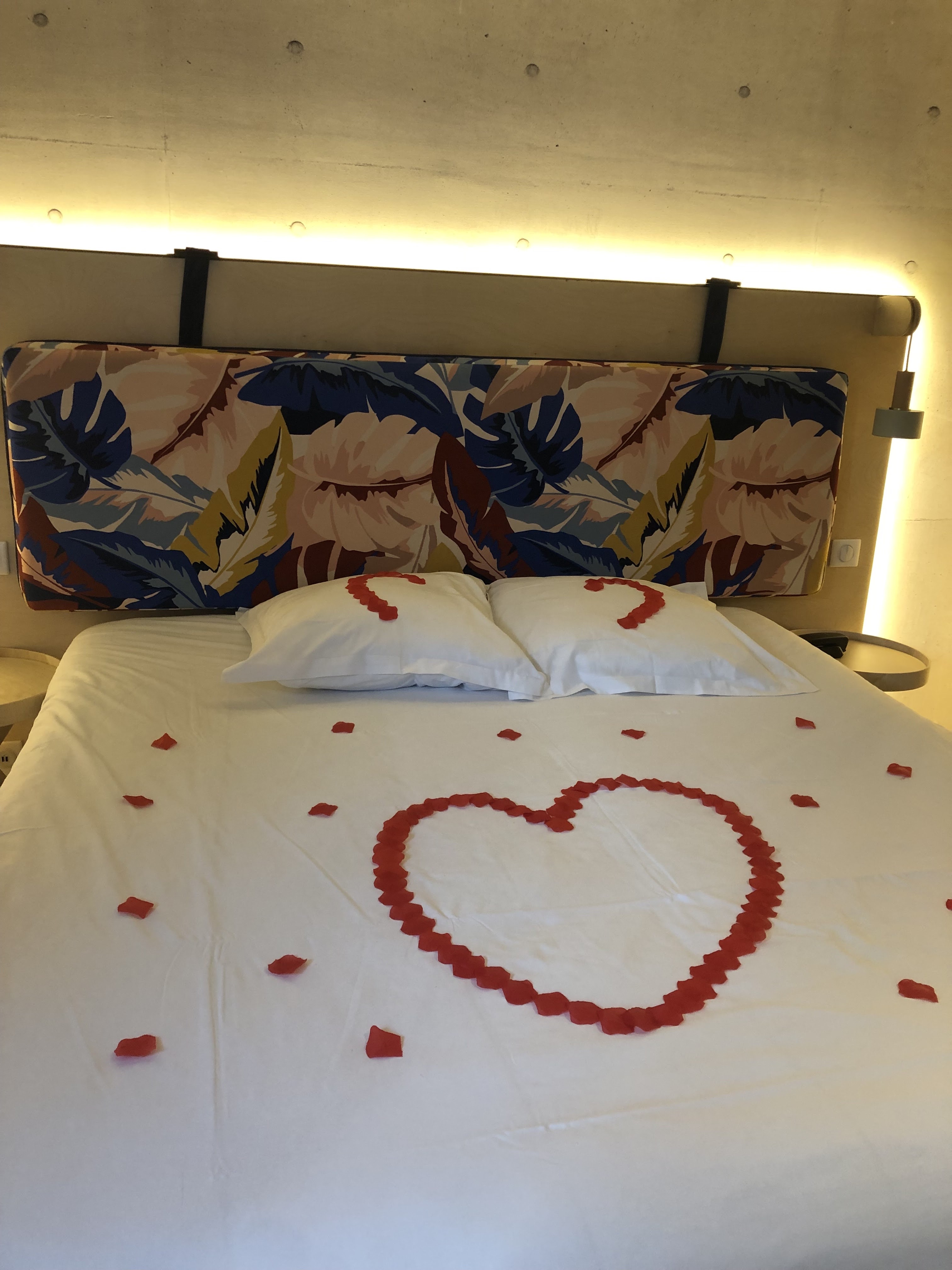 Accueil sympathique et professionnel. La chambre était belle et spacieuse. Le petit déjeuner était très bon et copieux. Séjour agréable dans l’ensemble malgré quelques points négatifs que nous avons relevés parmi ces points positifs : Nous avons été déçus de la propreté de la chambre (cheveux, saletés et poussière). Le service de ménage a oublié de faire notre chambre et de fait, nous changer le linge de bain qui était humide… nous avons donc dû nous sécher avec du linge humide, pourtant nous avions bien positionné notre pancarte sur la poignée de la porte de chambre pour l’indiquer au personnel. Après plusieurs relances auprès de la réception, nous en avons eu le jour de notre départ… Aussi, le matériel de la chambre était quelque peu mal adapté (miroir de la salle de bain beaucoup trop bas pour des personnes de taille normale : 1,65m et 1,84m). La température de l’eau de la piscine n’était pas assez chaude à notre goût, c’est dommage…