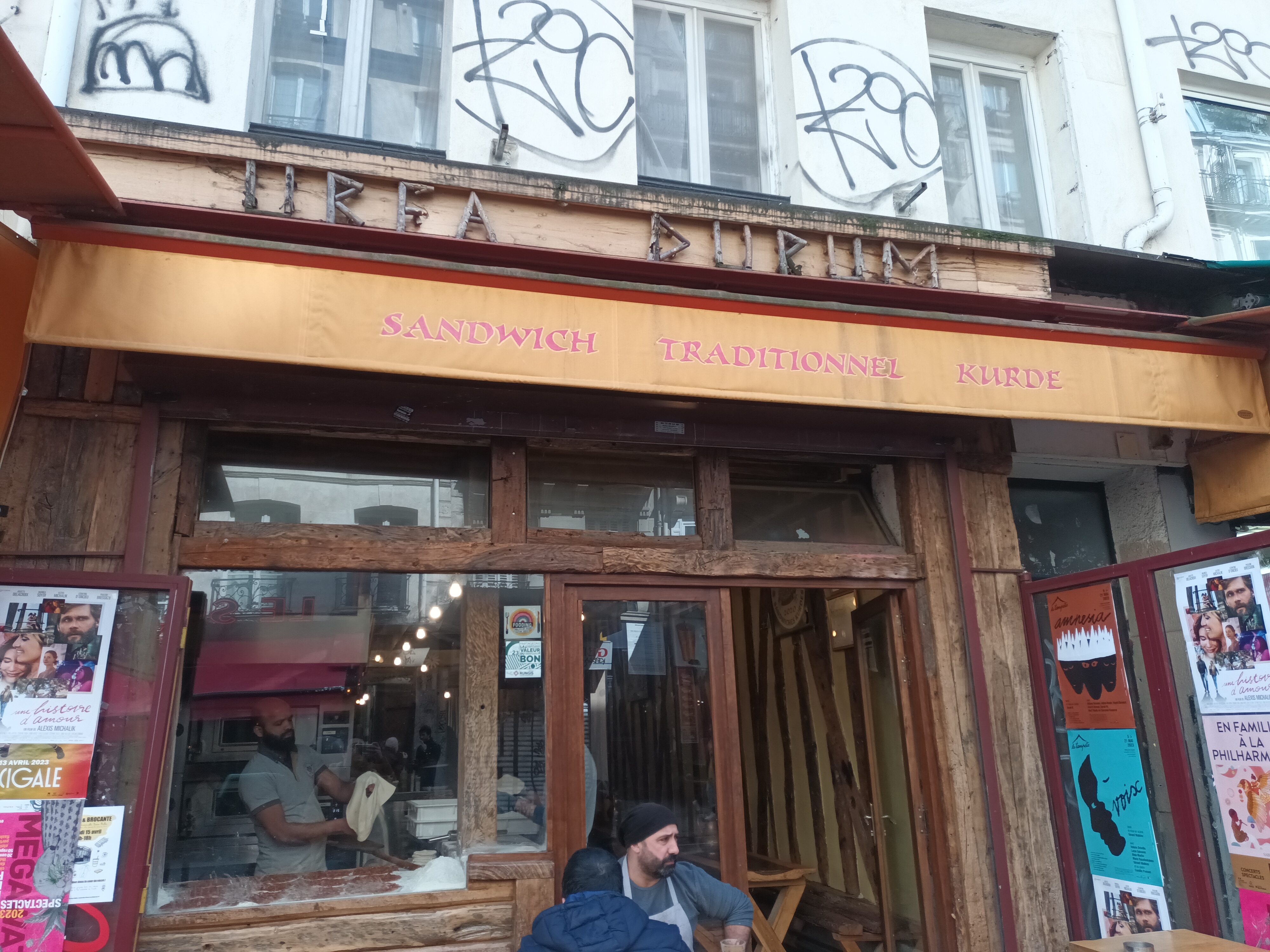 Jolie surprise en face de l’arc de Strasbourg Saint Denis !! Pour ceux qui imaginent « grec/kebab » par les photos, je suis certain de leur dire non. C’est une vrai gourmandise turc/kurde. J’ai commandé un wrap agneau (le nom était pas si débile mais plus authentique) : ni trop gras ni trop fade, bien équilibré en termes de sel aussi ! C’est un plat à déguster le goût des ingrédients il est ainsi un peu doux, on peut également leur demander, dans ce cas, quelques piments grillés qui marchent parfaitement avec leur sandwich ! Non seulement en terrasse large (4 ou 5 tables selon la quantité dans votre groupe), ils ont aussi les tables à l’intérieur plutôt bien décoré. J’ai pas encore eu l’occasion de goûter leur plat, je me permet de laisser 4 étoiles pour que je puisse y revenir prochainement…! A tester pour tous.tes !!