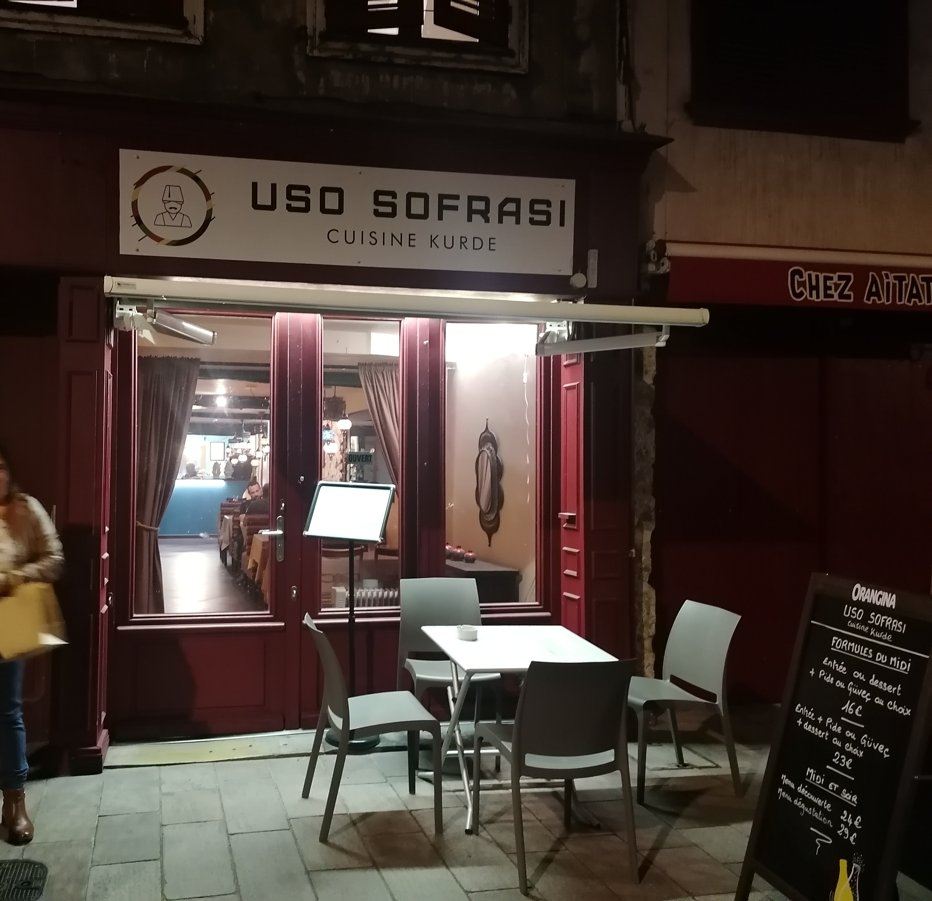 Arrivés tardivement en ayant réservé pour 3 personnes, nous avons été très bien accueillis L'atmosphère tamisée est agréable, la décoration typique Le personnel est à l'écoute et n'hésite pas à nous renseigner, ainsi qu'à nous conseiller un vin turc, qui fut une très bonne découverte. Les plats sont variés et savoureux, nous recommandons ce restaurant et nous reviendrons à l'occasion. Uso Sofrasi merci encore pour cette découverte
