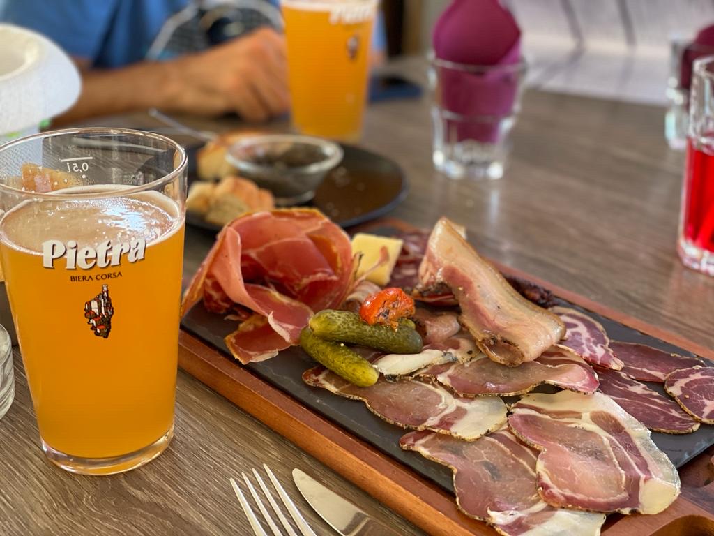 Un service impeccable, une assiette de charcuterie d’anthologie pour commencer, tout ça avec le sourire et une bière Corse artisanale !