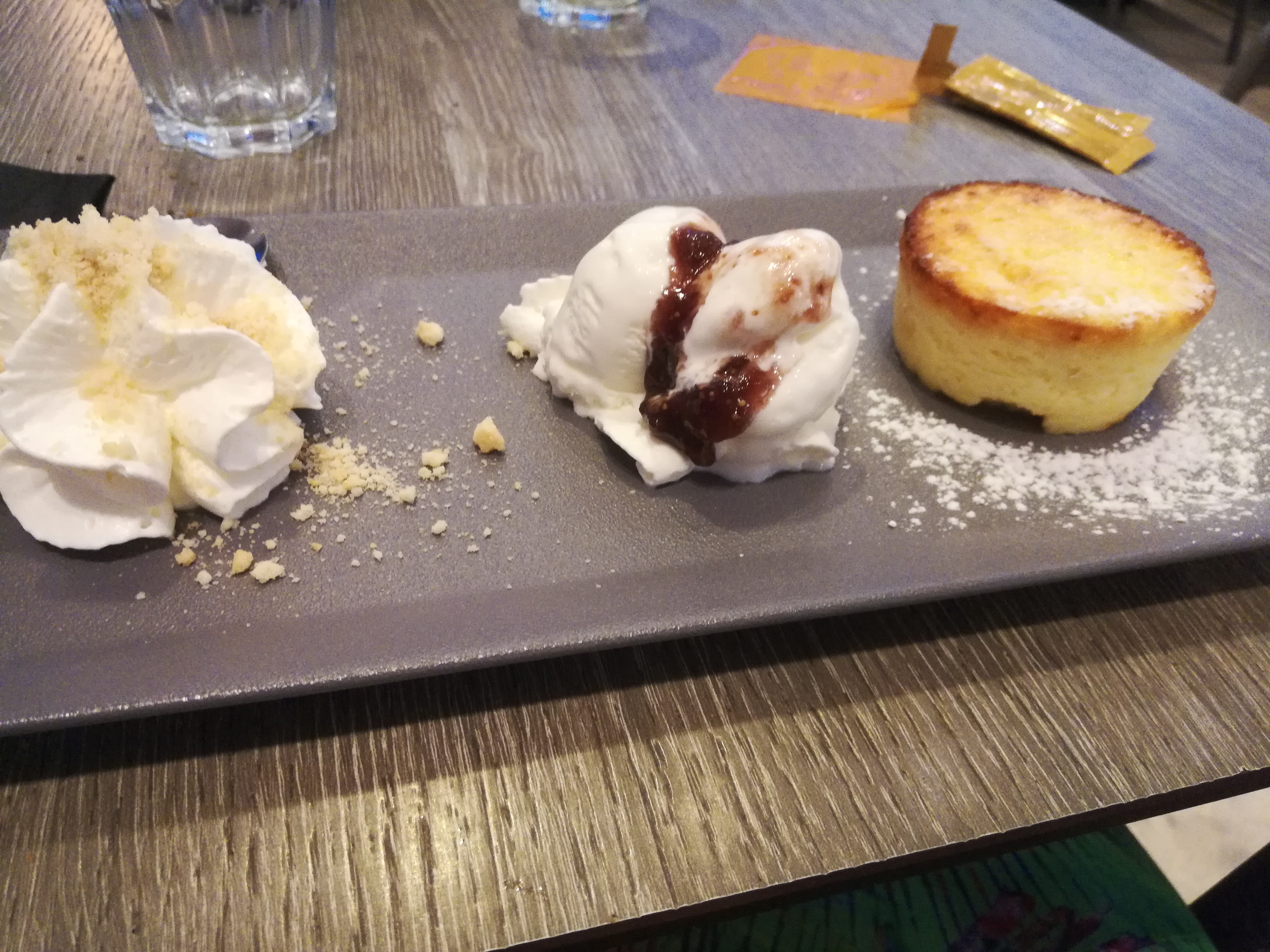 Nous avons juste testé la partie glace..très bonne et prix raisonnables pour l emplacement..terrasse agréable.. j ai jeté un œil à la carte des repas et ça me semble tout à fait correct ..menus à 16 et 28€