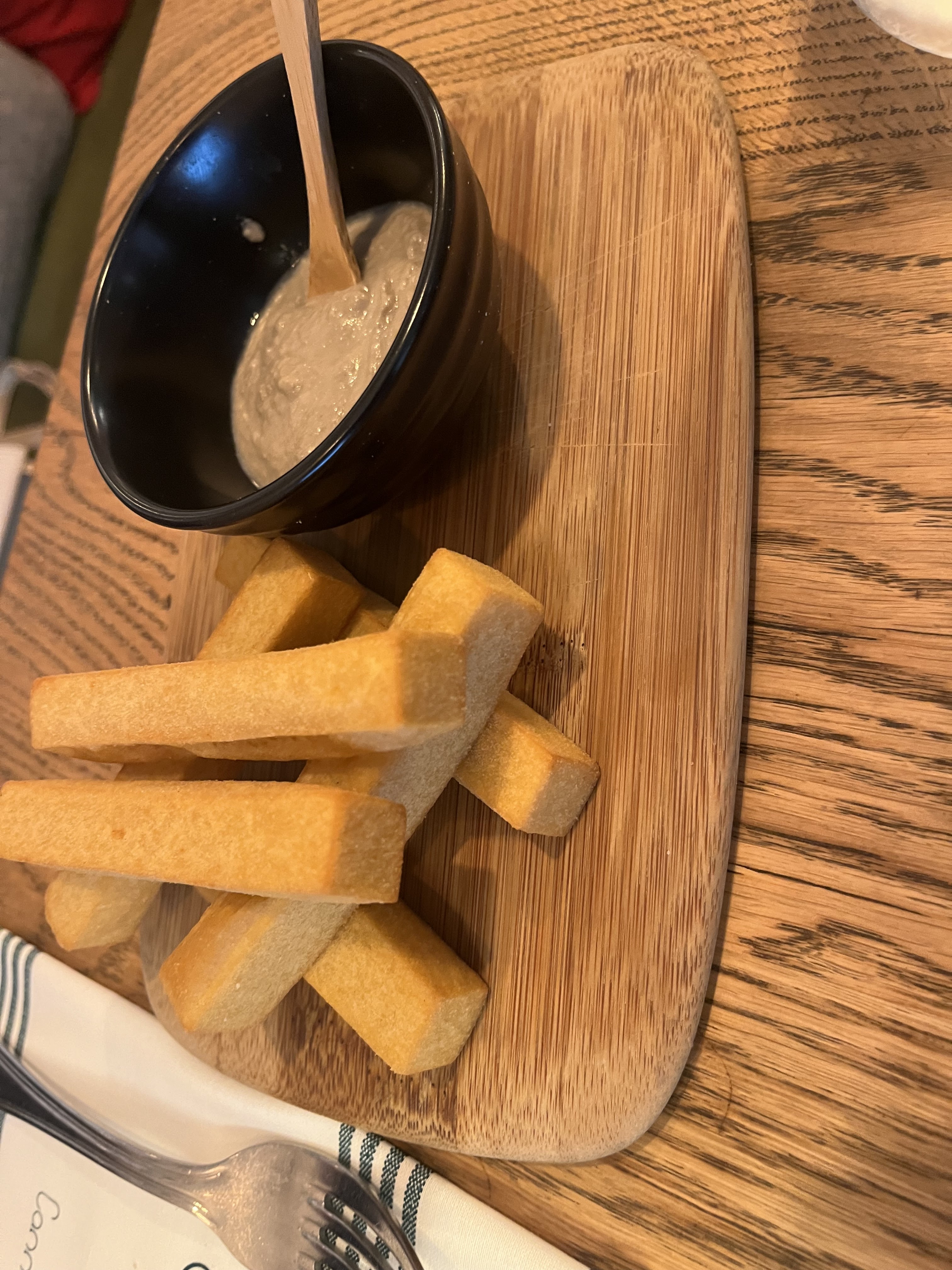 Je ne peux pas dire assez de bonnes choses à propos de cet endroit ! La nourriture était exceptionnelle. Les saveurs étaient si délicieuses ! Nous avons commandé tous les accompagnements de légumes pour les entrées. Le menu est très varié et nos plats principaux étaient parfaits. (Raviolis de crabe et côtelette de porc.) Regret de ne pas avoir pris de photos ! Le personnel était incroyable, sympathique, serviable et attentionné. Le propriétaire nous a aidé à sélectionner le vin parfait. L'ambiance est très relaxante mais optimiste. Parfait pour une soirée entre amis ! C'était notre dernière nuit à Cannes, mais si nous avions découvert UVA plus tôt, nous aurions volontiers dîné ici deux fois !