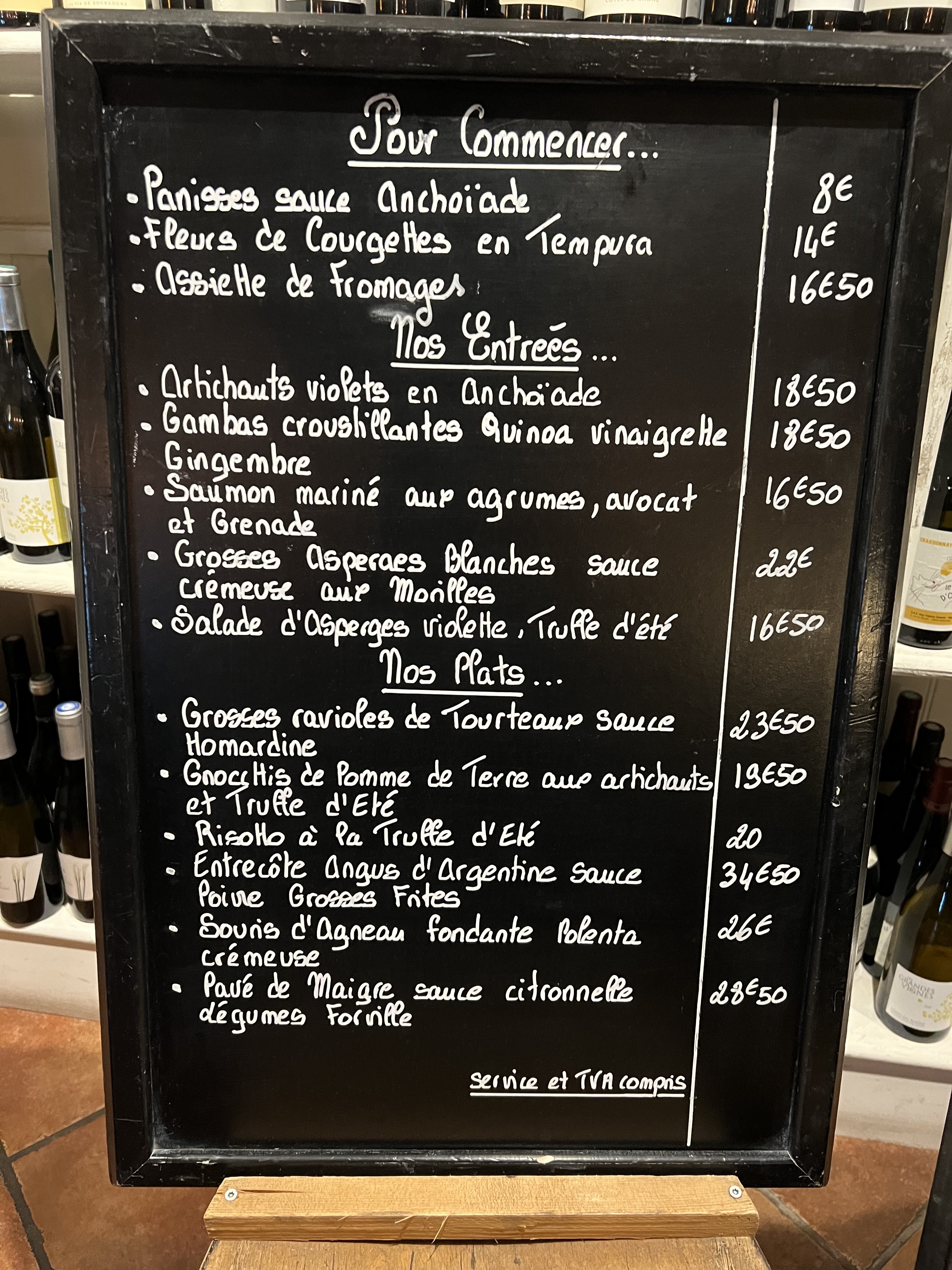 Une carte des vins complètes de vins natures aux grands crus, un très bon conseil et au passage on y mange extrement bien. Très belle adresse à Cannes !