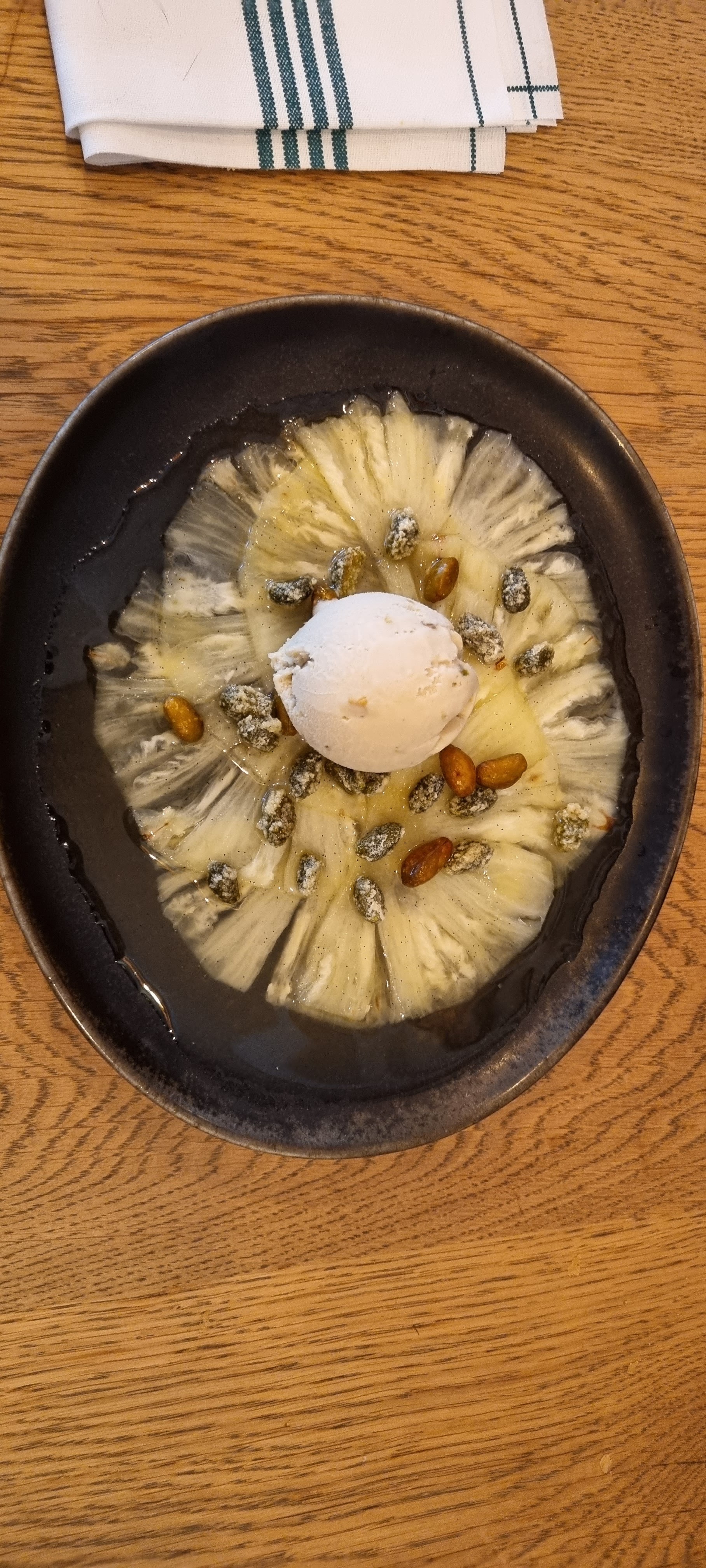 Superbe découverte! Les plats et les produits sont excellents. Nous avons pris notamment le cordon bleu (à partager) et comme dessert la suggestion le fruit à savoir un doux mélange d'ananas, glace et meringue fondante . A ne pas hésiter, c'était excellent.
