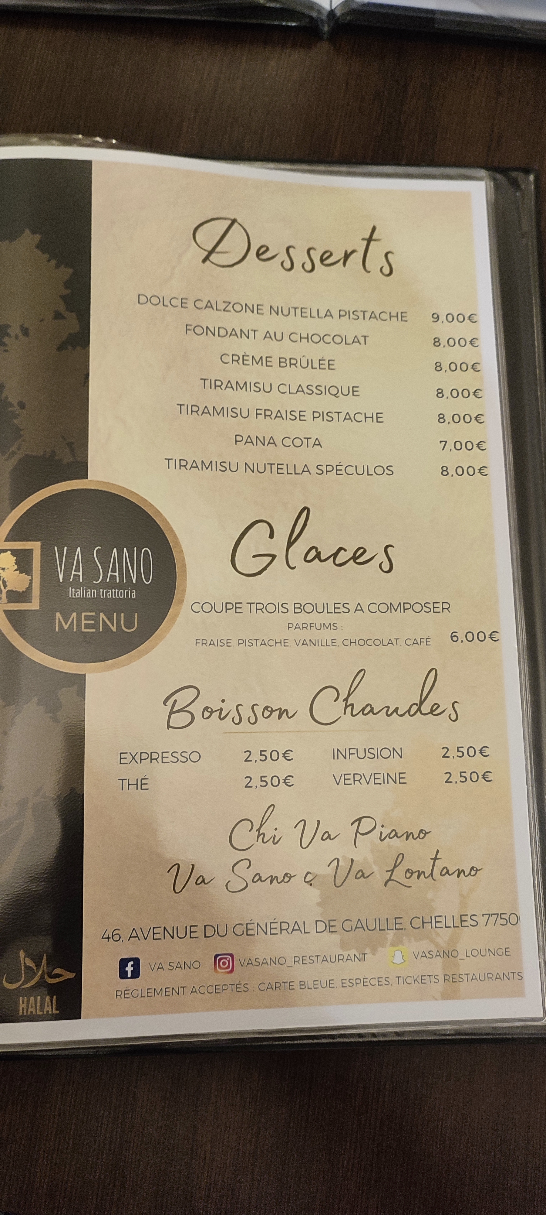 Nous avons dîné hier entre amis chez Va Sano. Accueil chaleureux et personnel adorable. Pizzas bonnes mais rien d'extraordinaire. Gros point négatif le plat de pâtes servi 20mn avant l'arrivée des pizzas ... mon ami a donc mangé en décalé de tout le monde pour espérer mangé chaud. Tiramisu au nutella qui ressemble plus à une mousse au chocolat qu'un Tiramisu. Le classique était bon mais la crème un peu granuleuse et morceau de blanc d'œufs dans le fond. Bref nous ne reviendrons pas mais nous avons tout de même passé une bonne soirée. Merci à vous