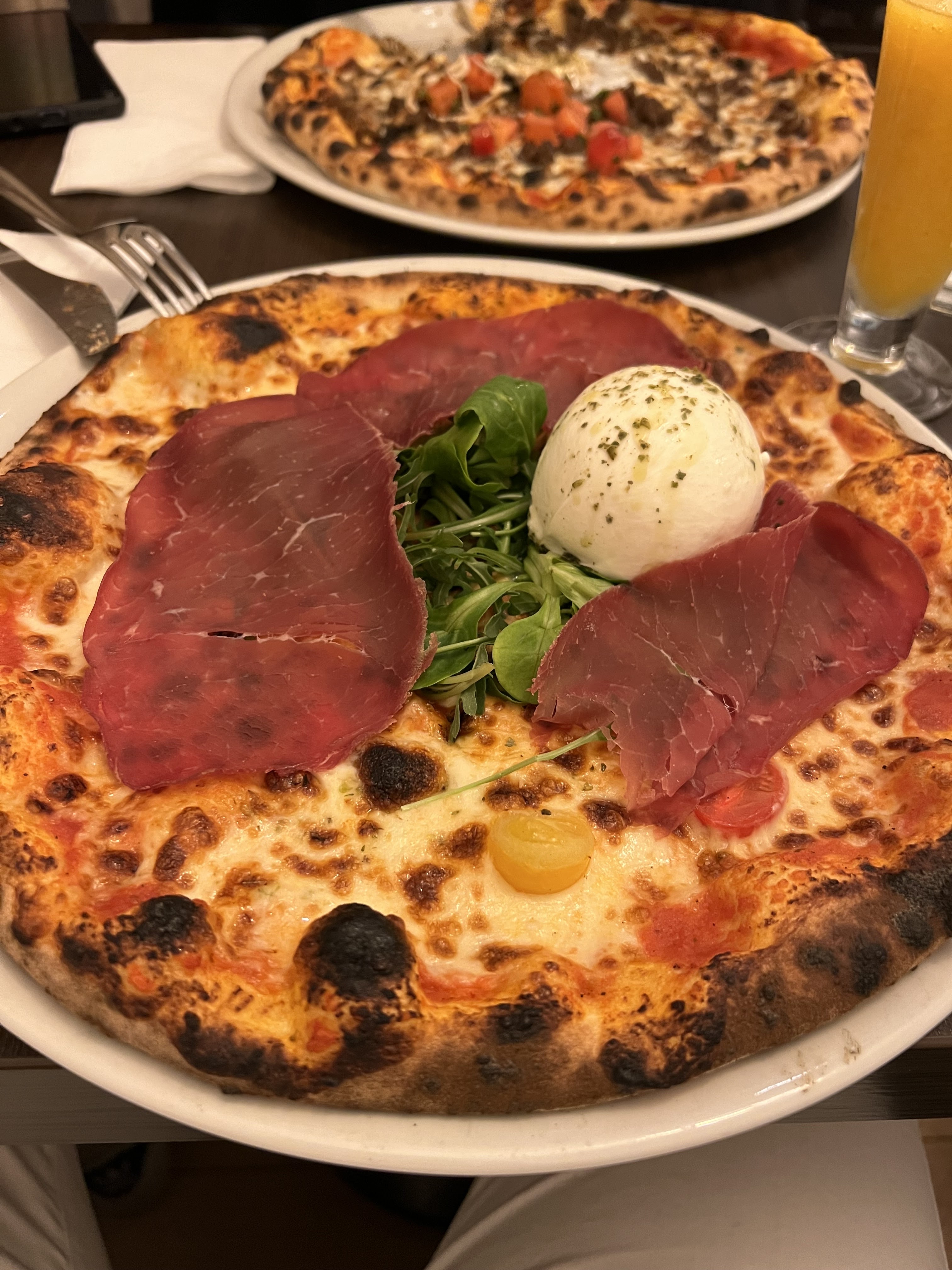 Étant venu avec ma fille et ma femme. Nous avons pris 1 entrée et 2 pizza. L’entrée était juste magnifique avec le pain tout chaud sortie du four et la buratta magnifique. Les pizza étaient très très bonnes. Je conseille fortement. Très bonne ambiance calme chaleureux ce qu’il me fallait après une dure journée de travail. Plus besoin d’aller à Paris pour le même service. Continuez comme ça et bon courage. Ne changez pas.